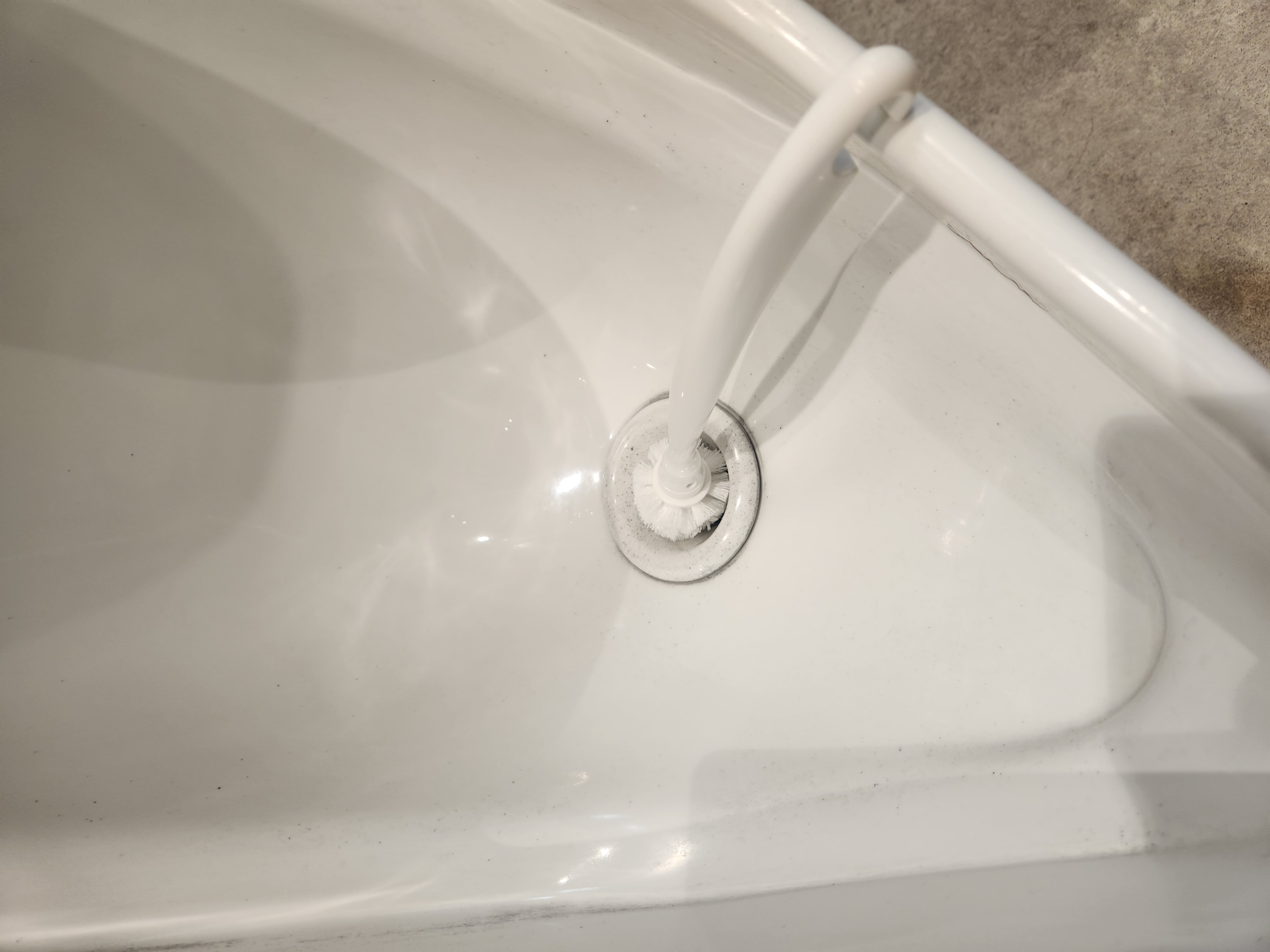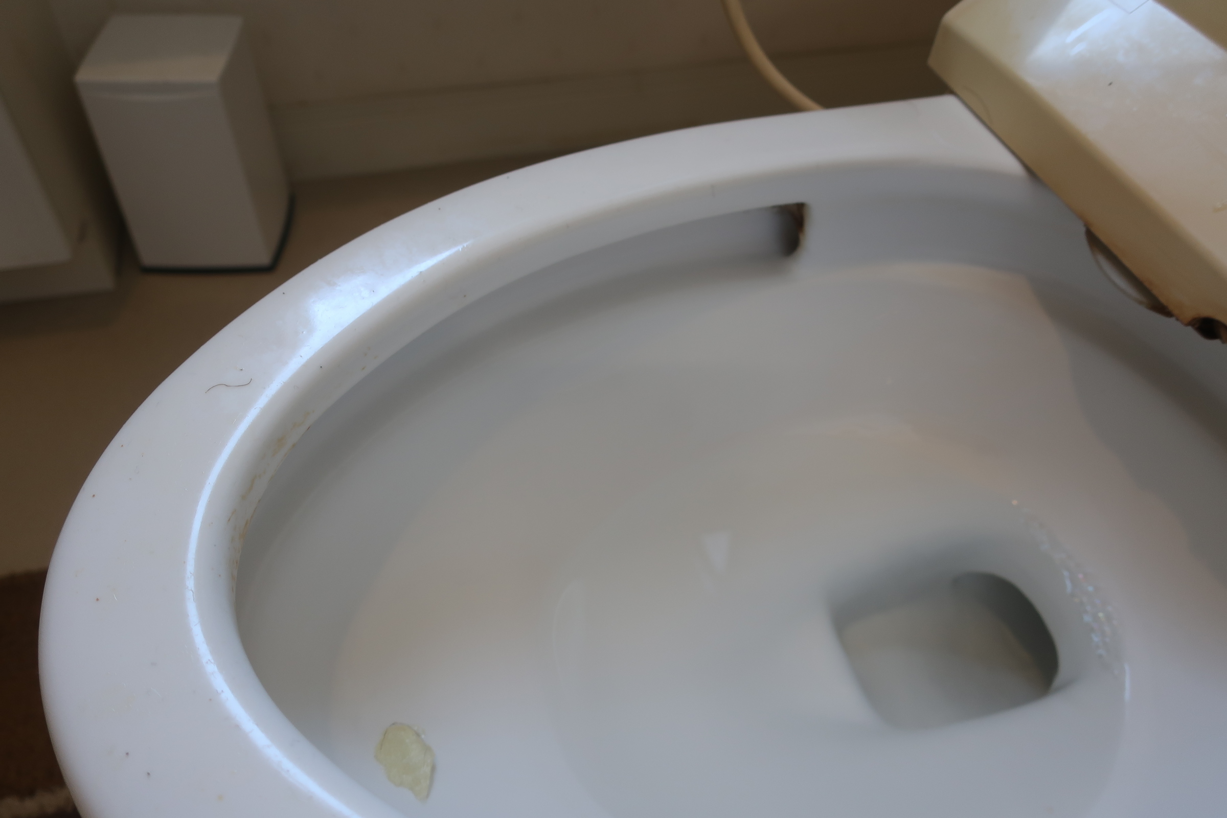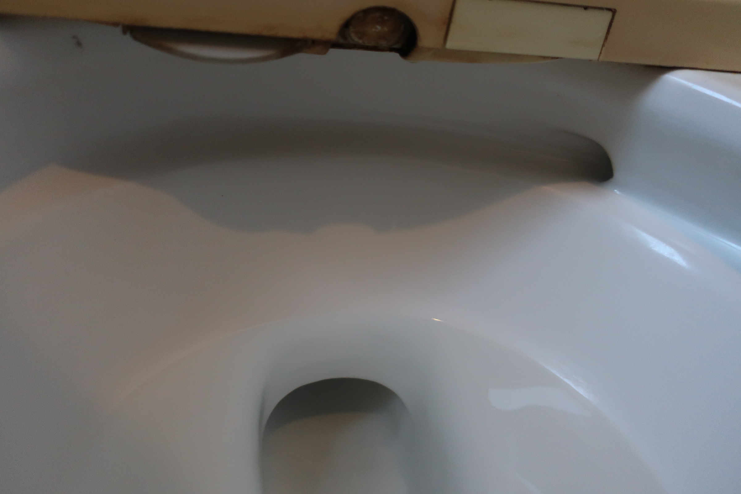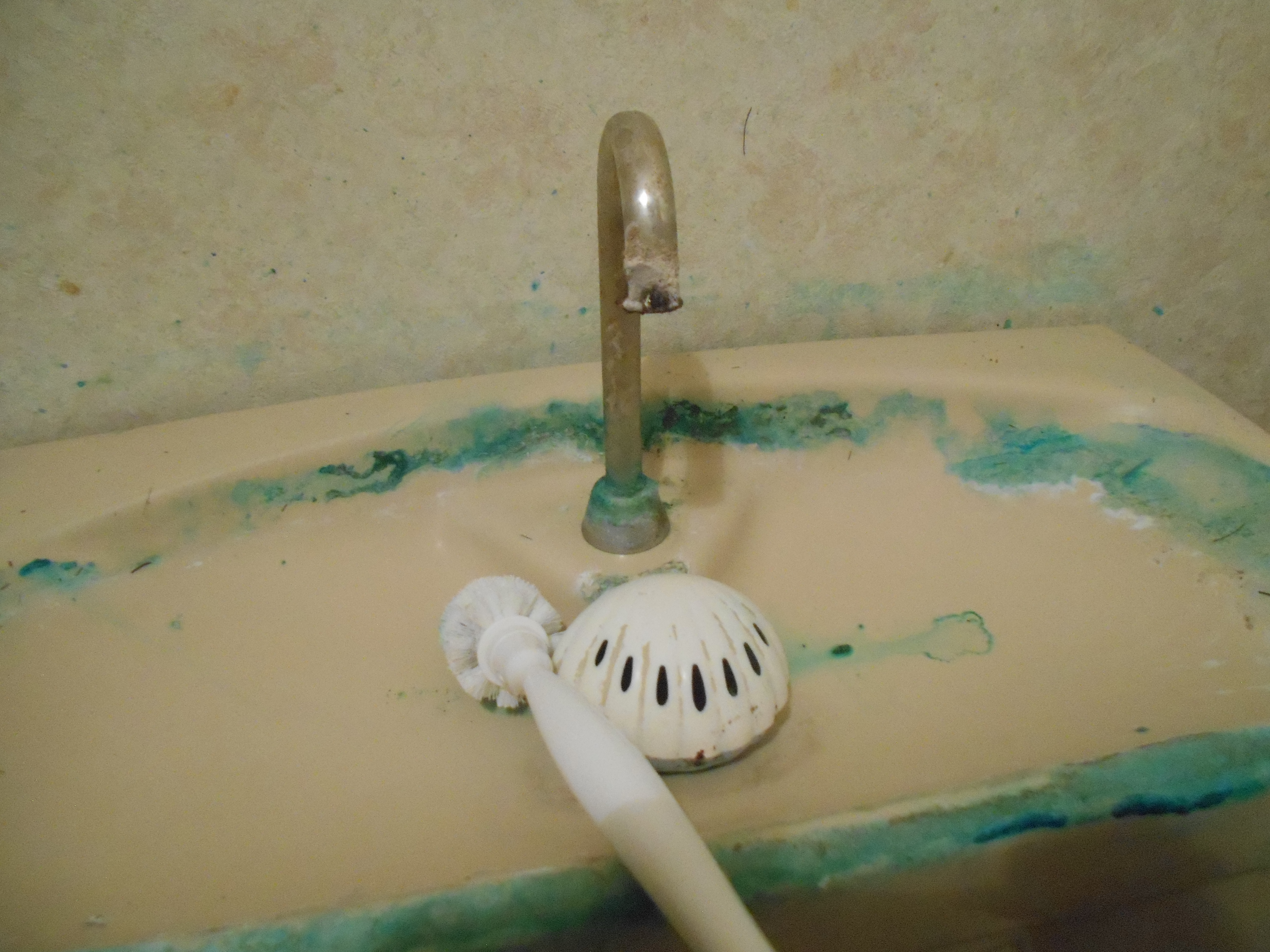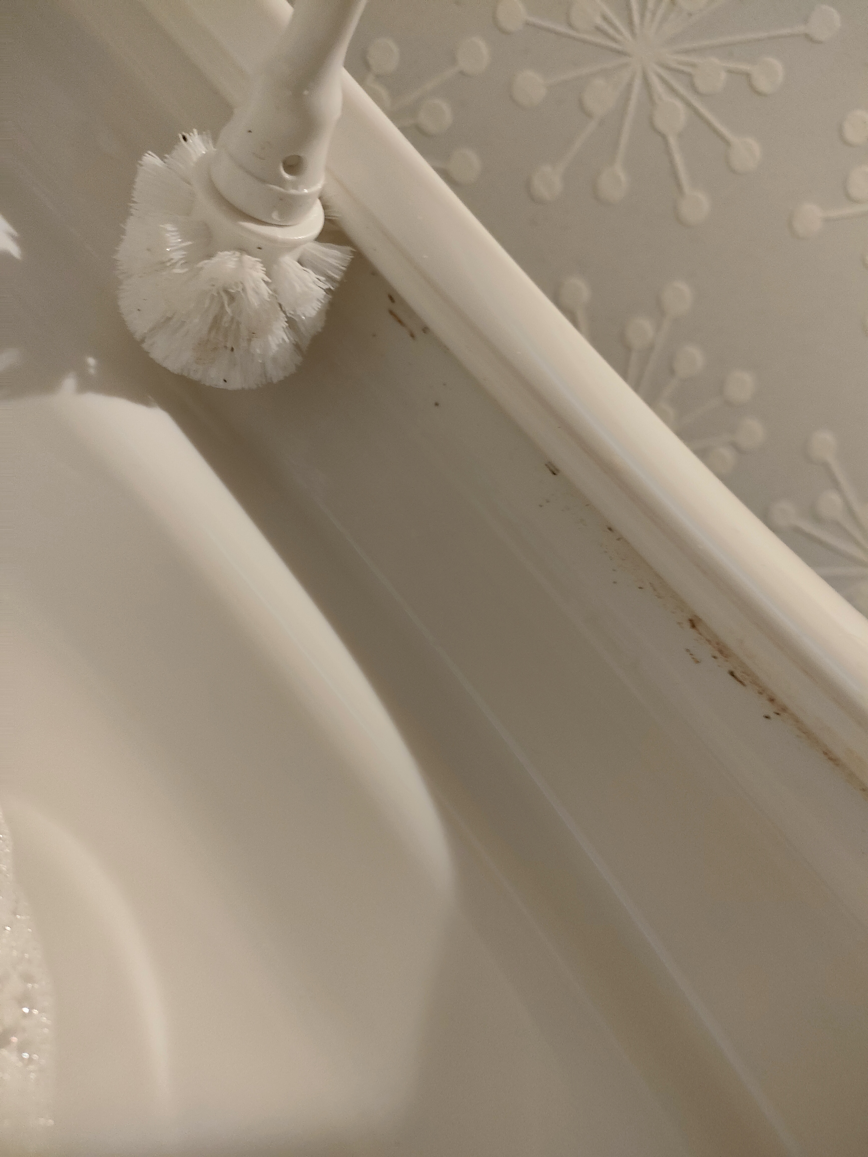 便器はともかくシンク上の受け皿の掃除をずっと怠っていて、ブルーレットの汚れがこびりついているのを見ない振りをしていたけどブラシのせいで掃除する気になった。 でも完全に綺麗にはならなかった(泣)。 |