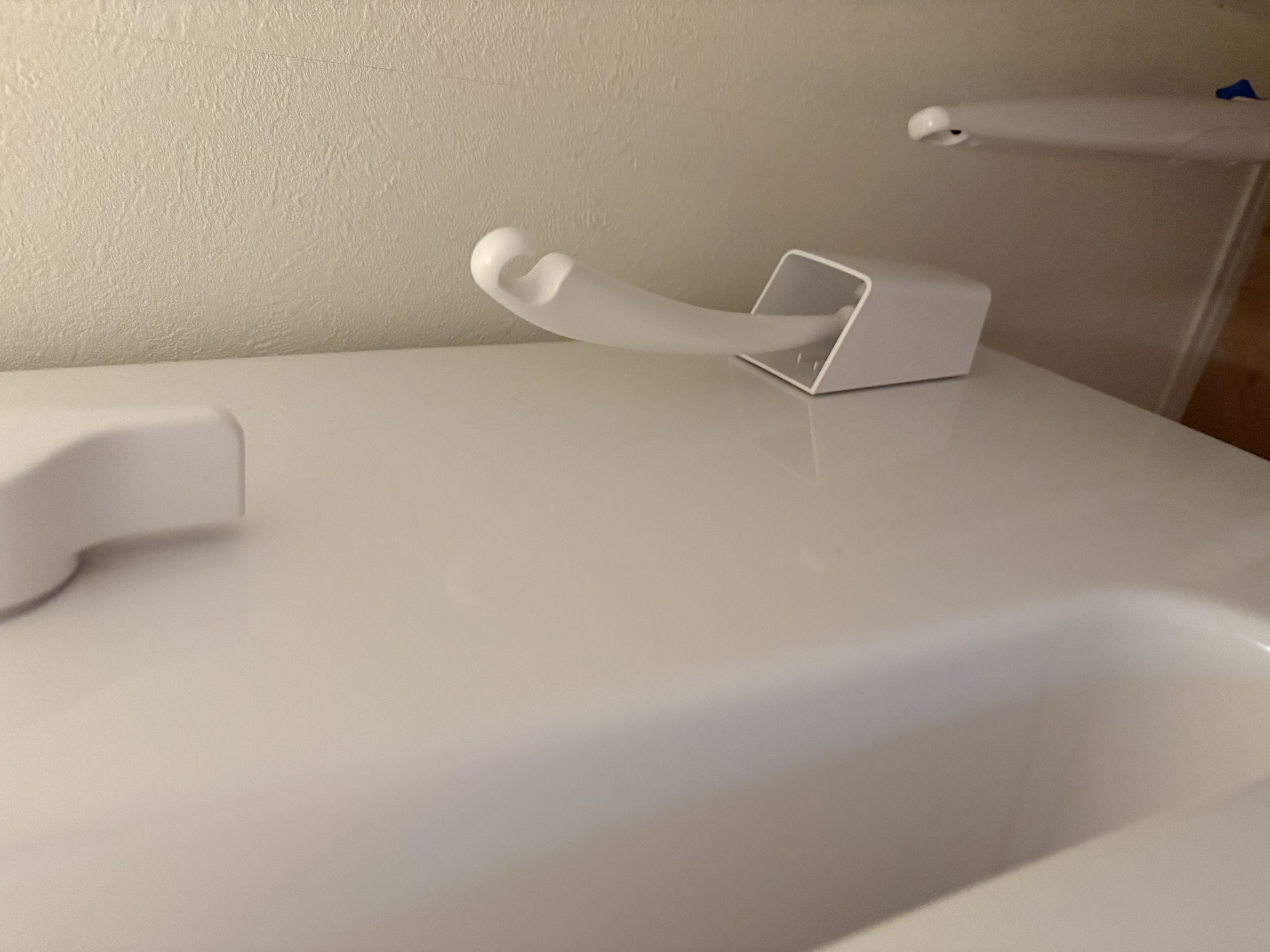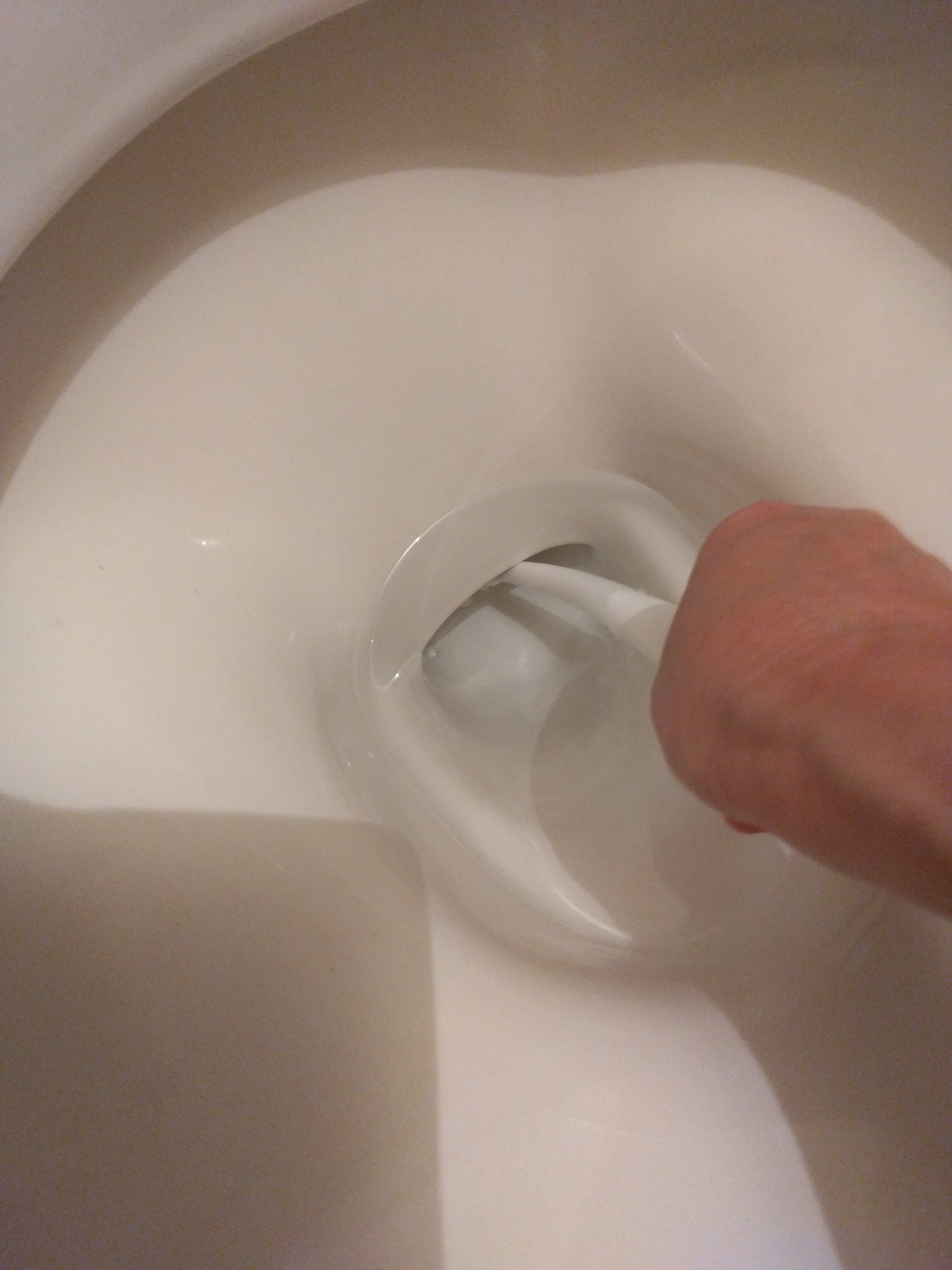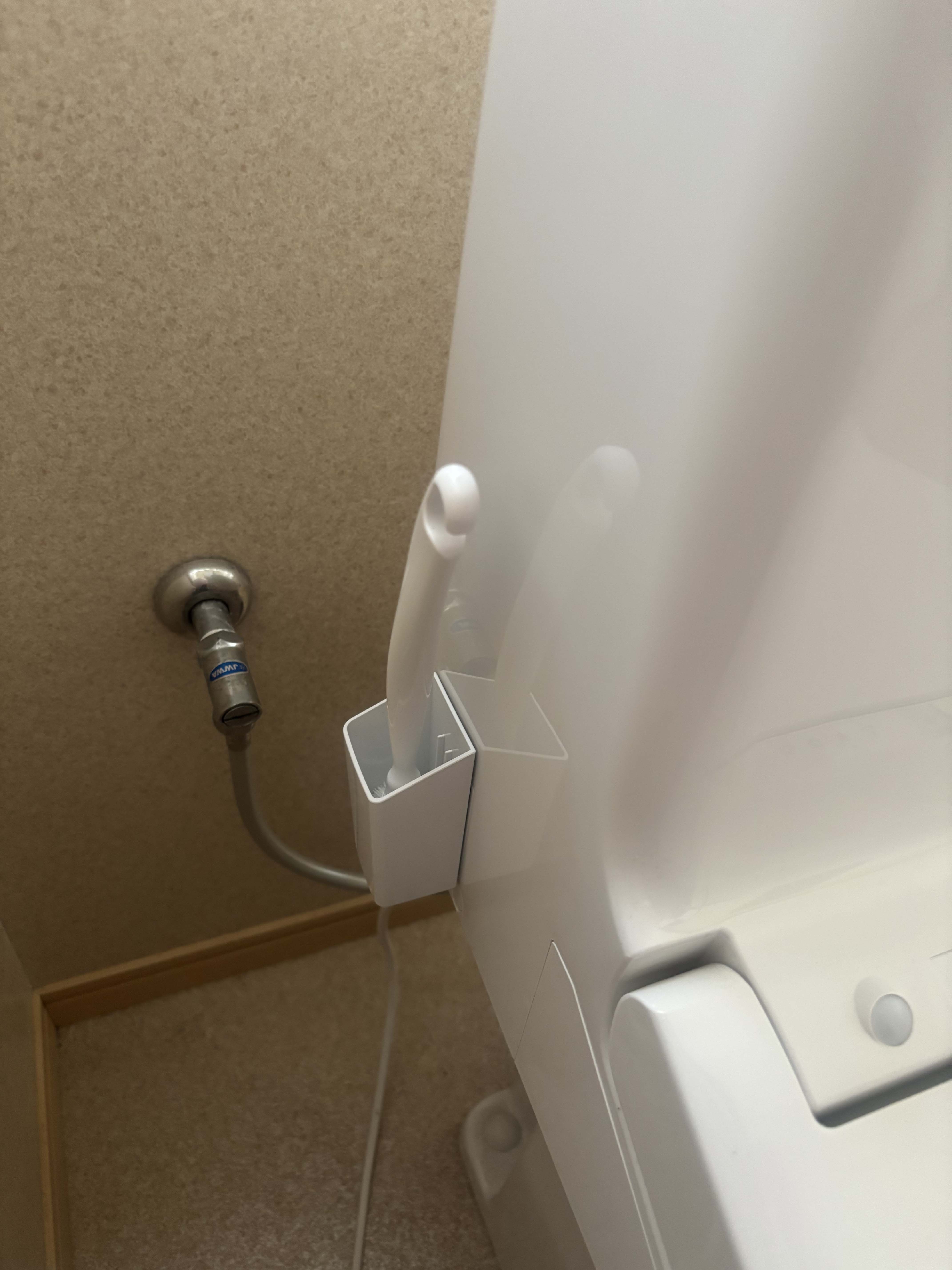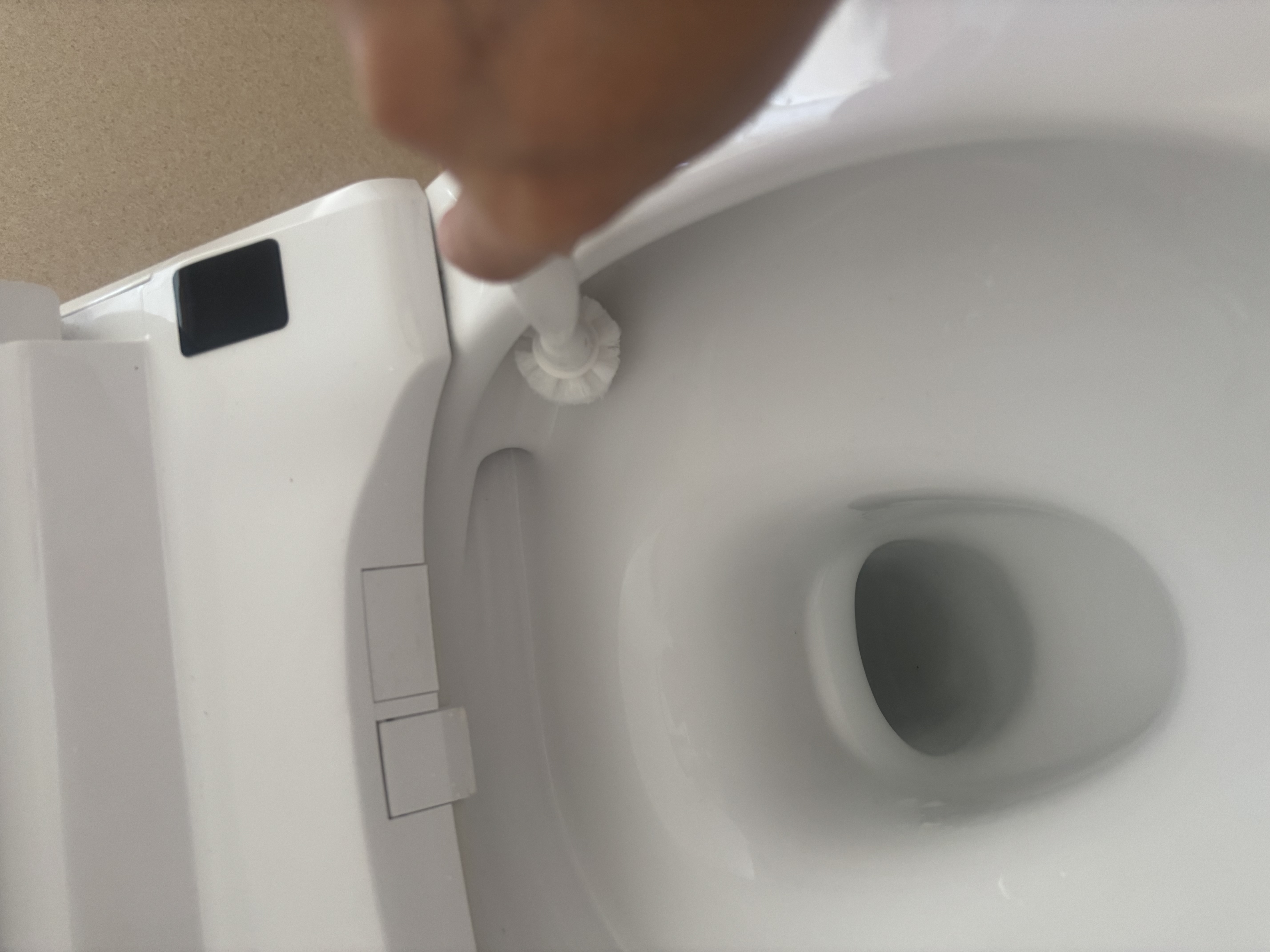 届いてすぐにタンク横に付けました。 いつも使っているブラシだと磨けないノズル下の部分にも届き、ブラシ部分も硬めなのでしっかり洗えました。 |