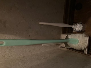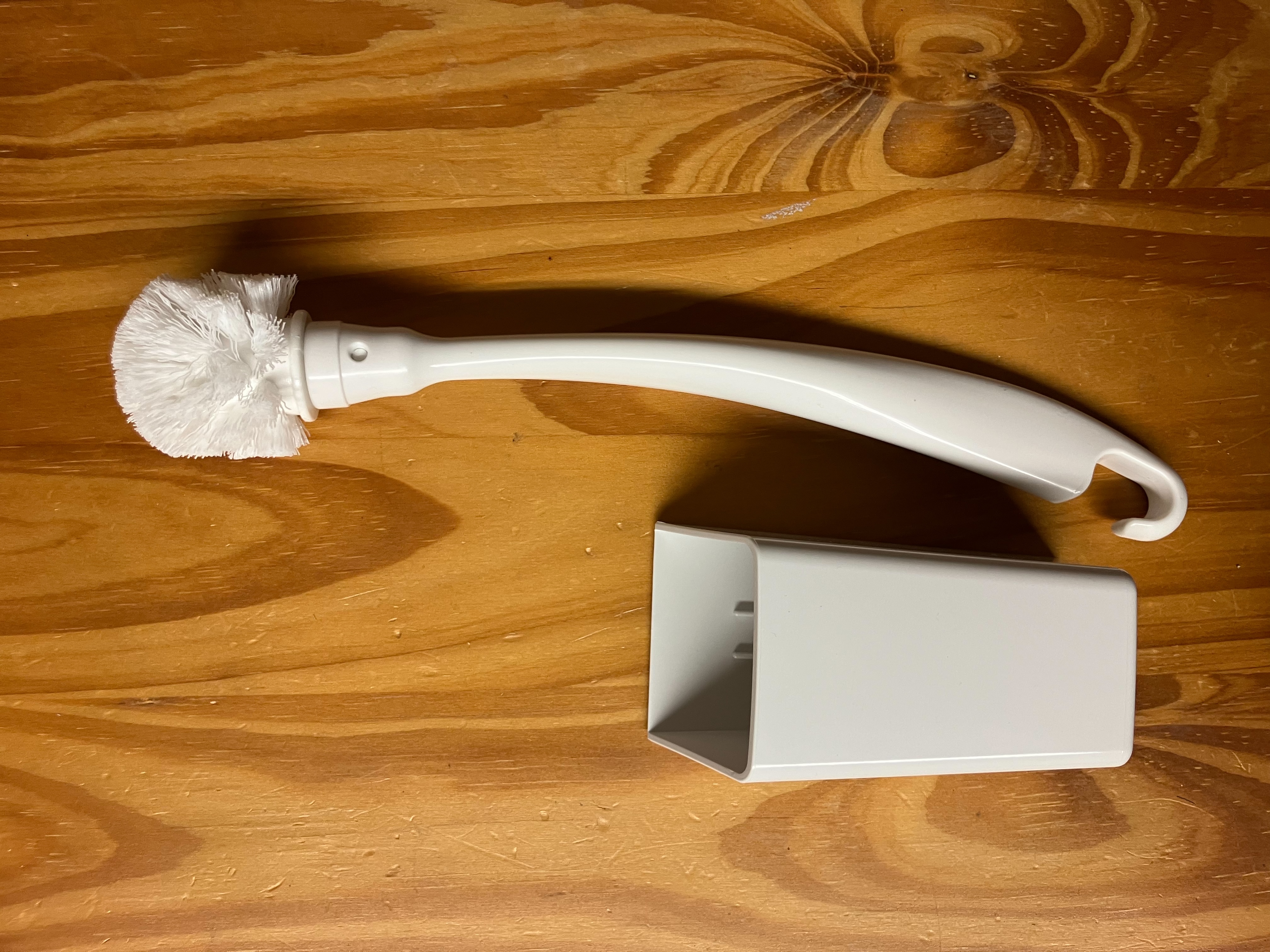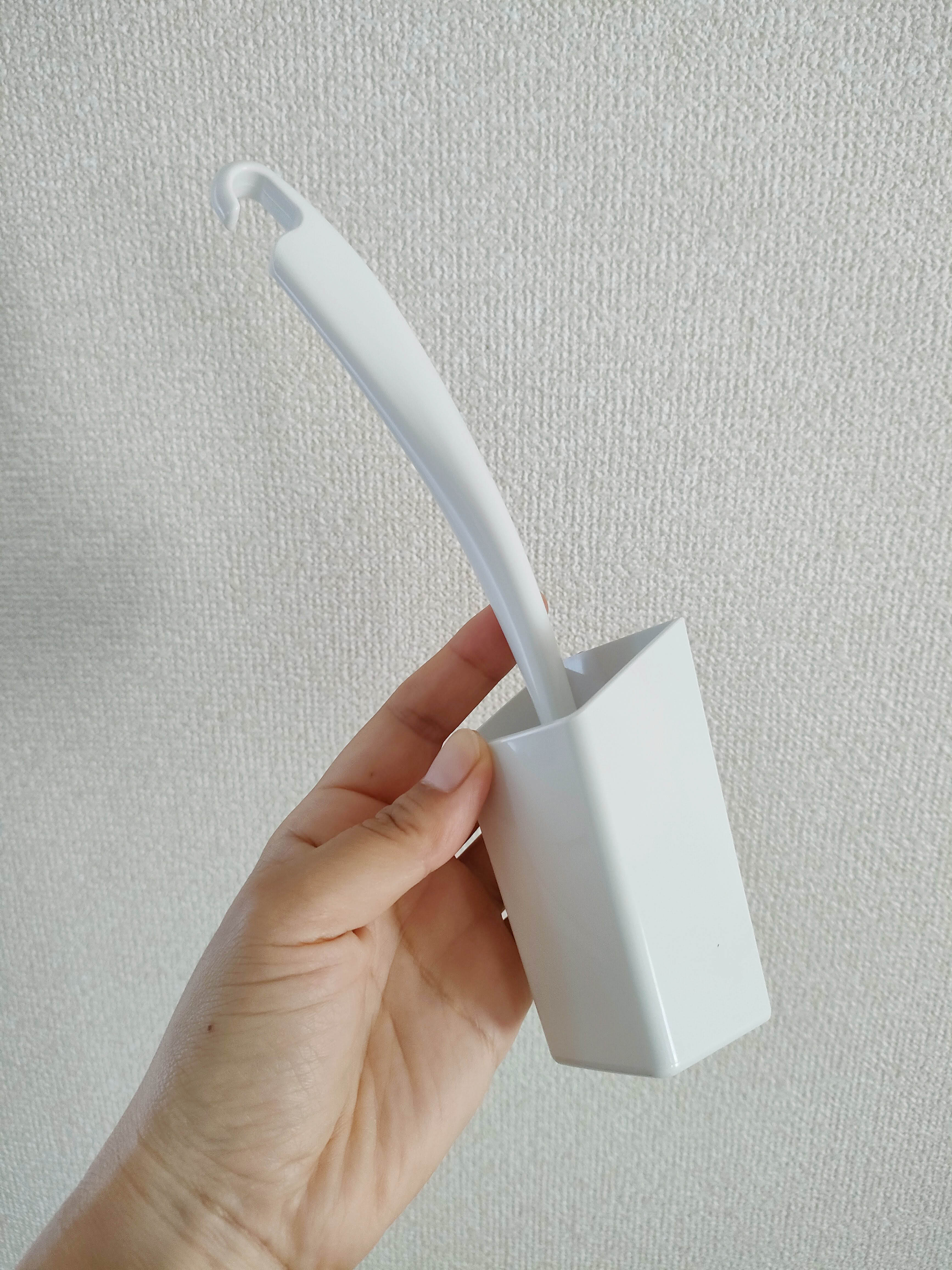 外から入るトイレだからか温水便座の裏のあたりに 黒っぽい汚れがあるので、それを掃除したくて応募しました。 ブラシタイプというのもあるからか、いまいちフィットしません。 角度も使いづらかったです。すいません。 Jの字のようなブラシがあればいいなと思います。 ケースはどこかに付けてしまうと洗えないので 後ろに置いてあります。 |