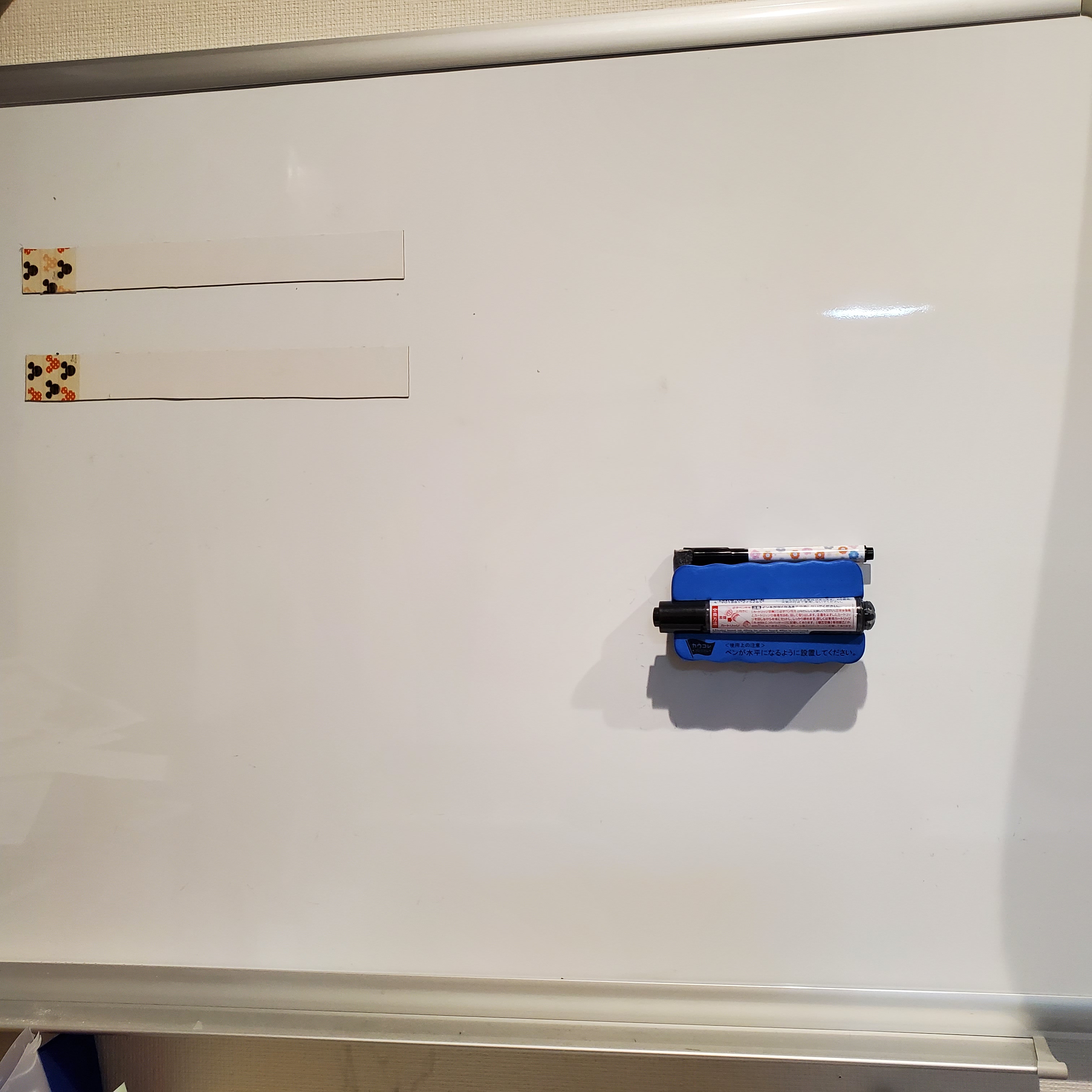 | 小さめのホワイトボードのため大きく感じるが、マグネット付きで使いやすい。 太めのペンはちょうどいいが、細目のペンだと落ちやすい。 |