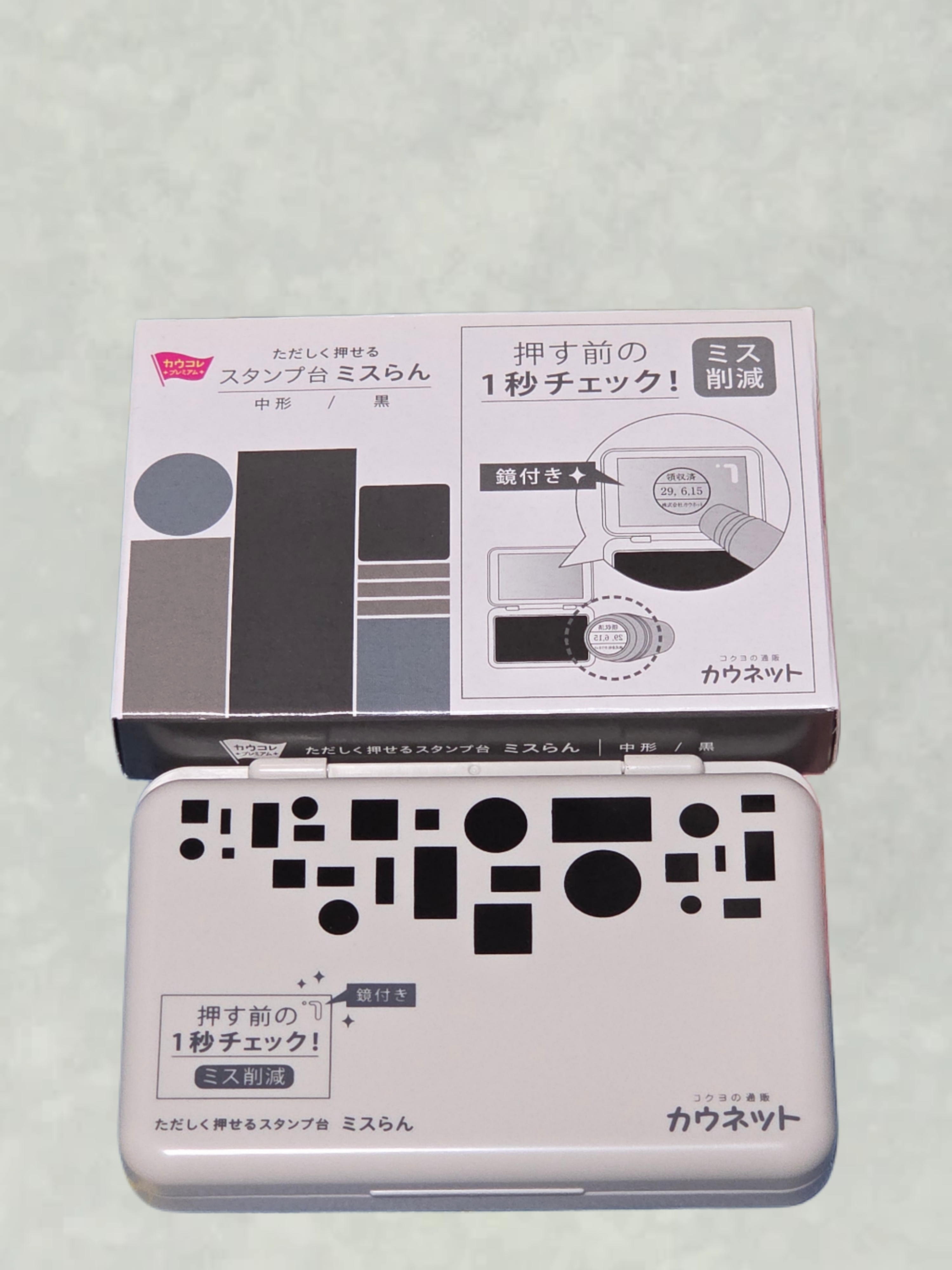 | フタの裏に鏡が付いてて、向きや位置をチェックできるので押印ミスが減りました。 向きを気にしながら押すストレスが軽減されます✨✨ インク色、形、サイズも一般的なスタンプ台と同等です。 向きや位置を気にする押印作業が多い人にオススメだと思います^ ^ |