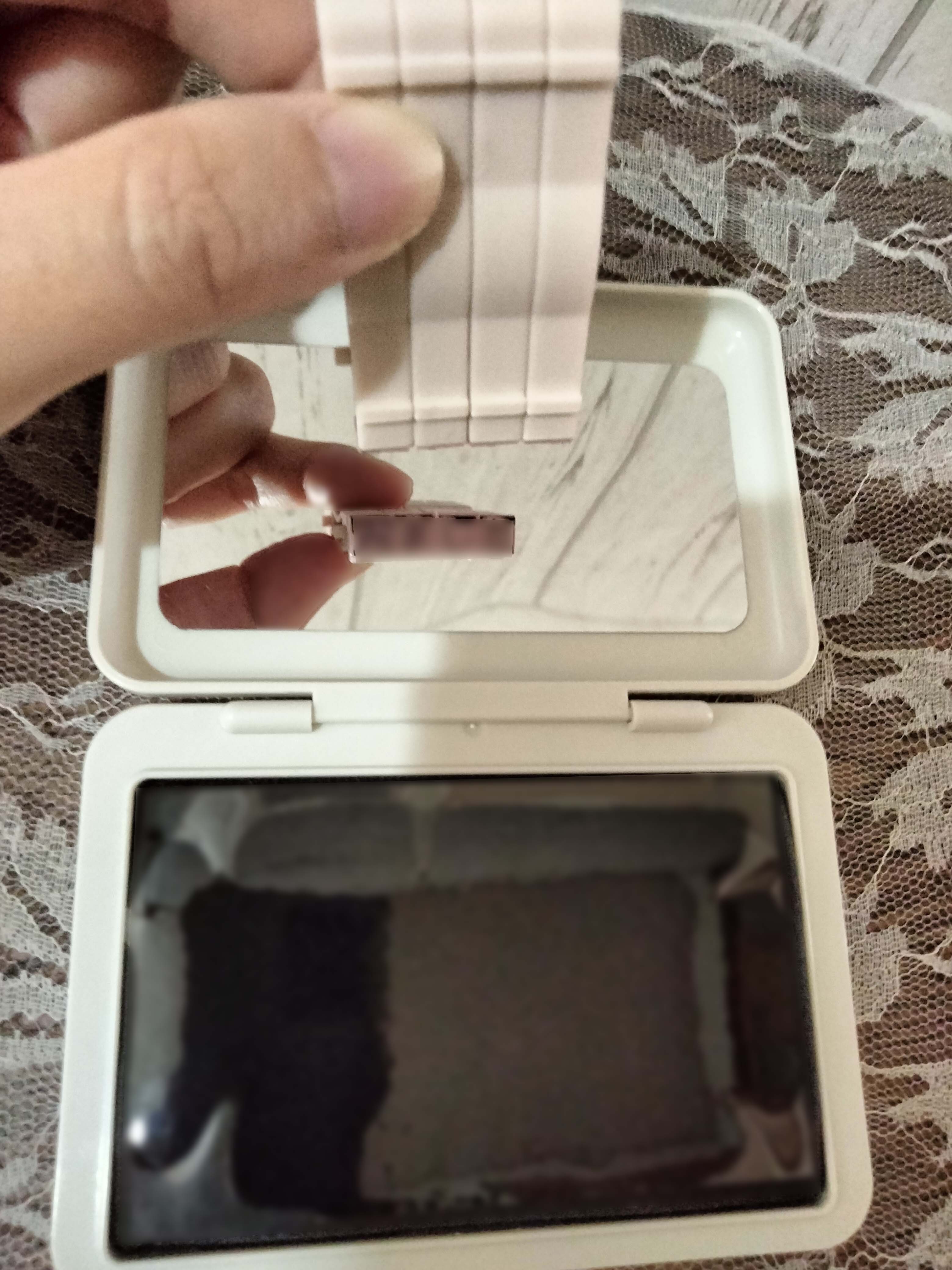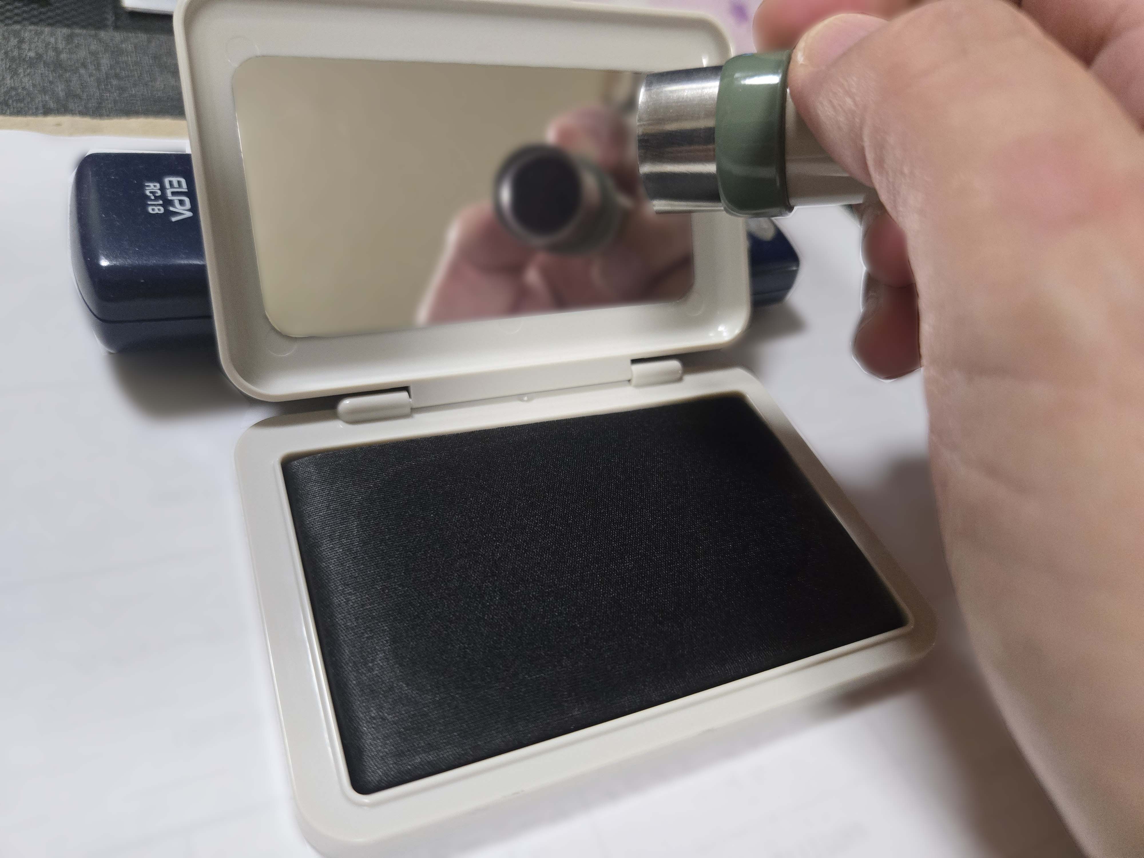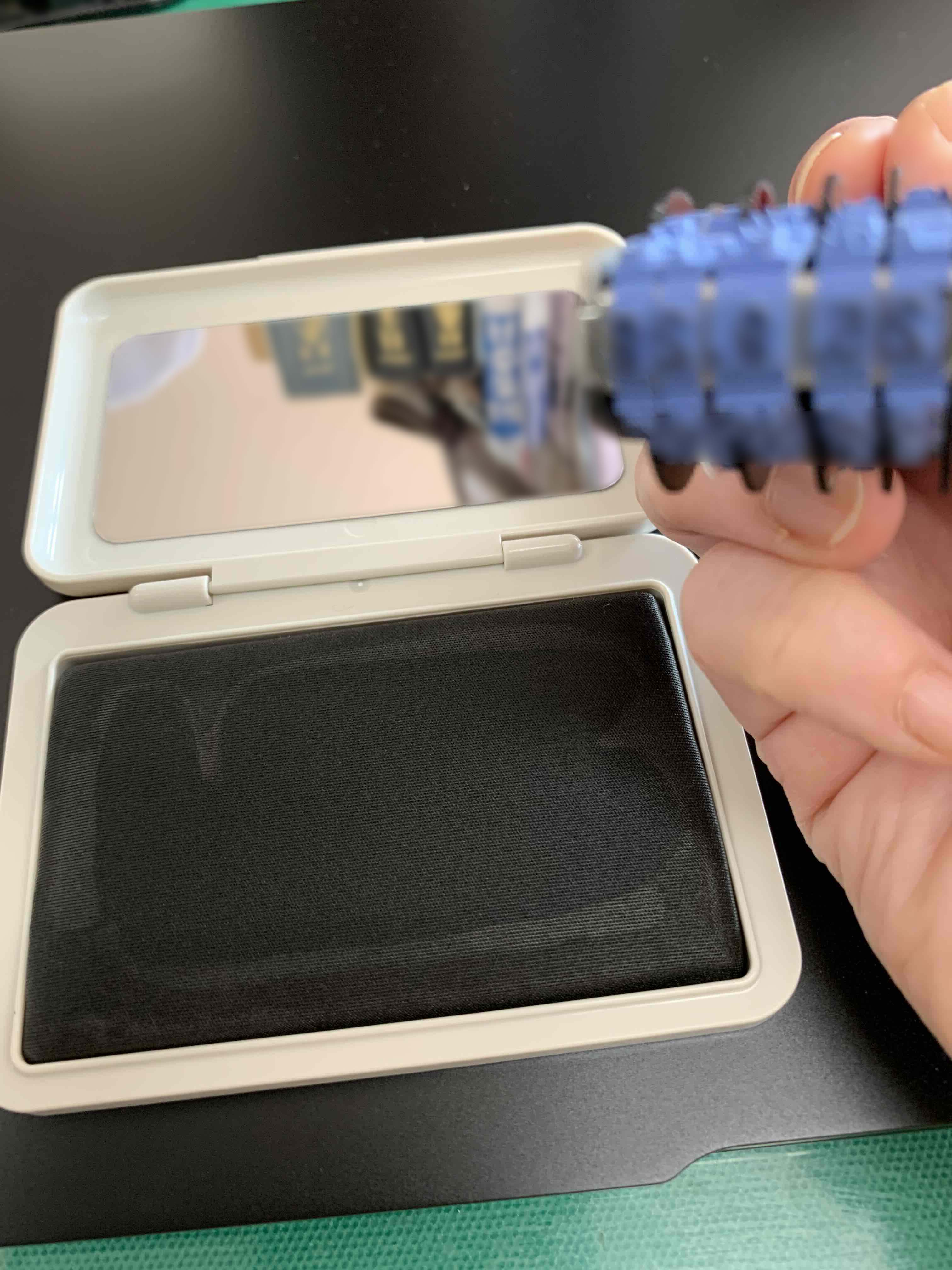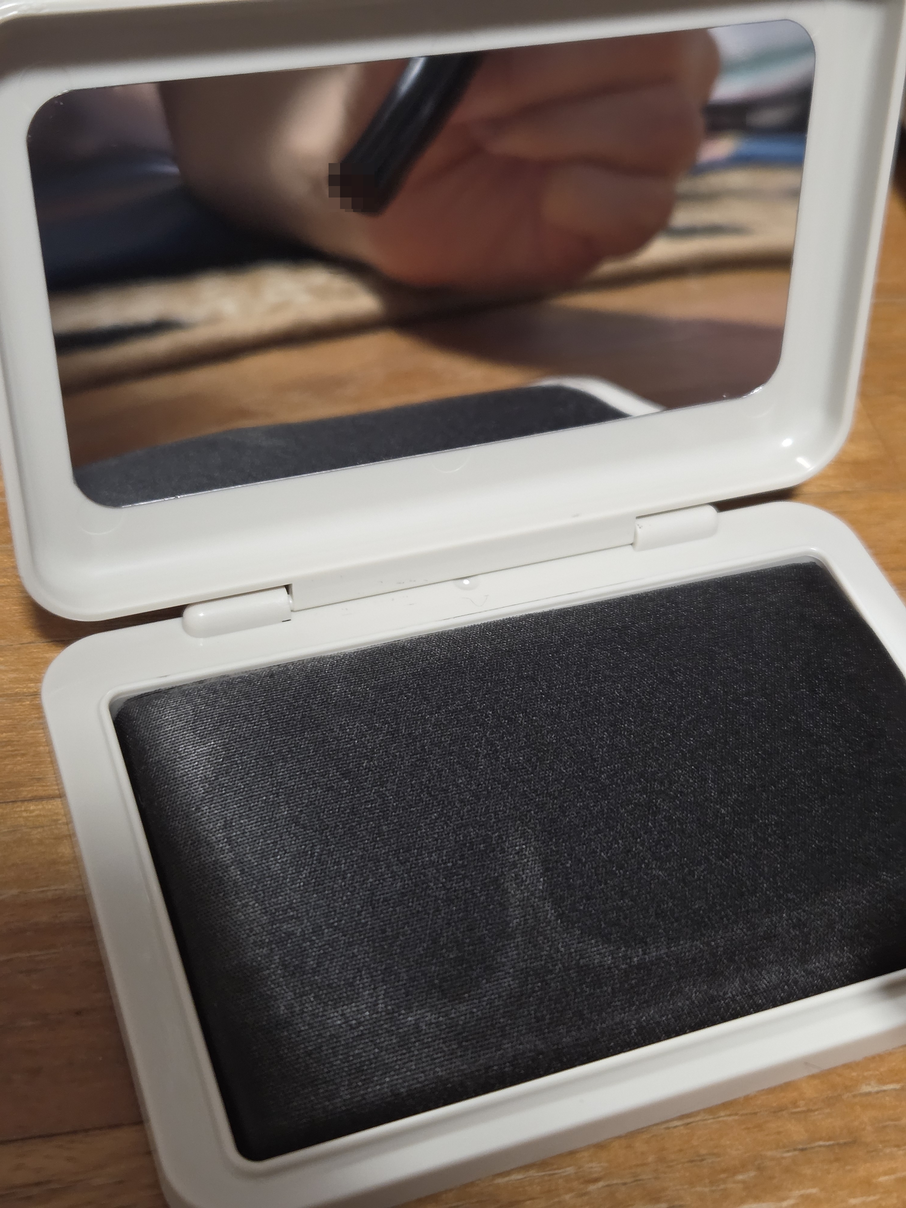 | ミラーがついているから確認できていい 蓋した時にミラーにインク付くか心配だったが全然問題なかった 最初ミラーが見にくいなと思ってたらカバーついたままだった |