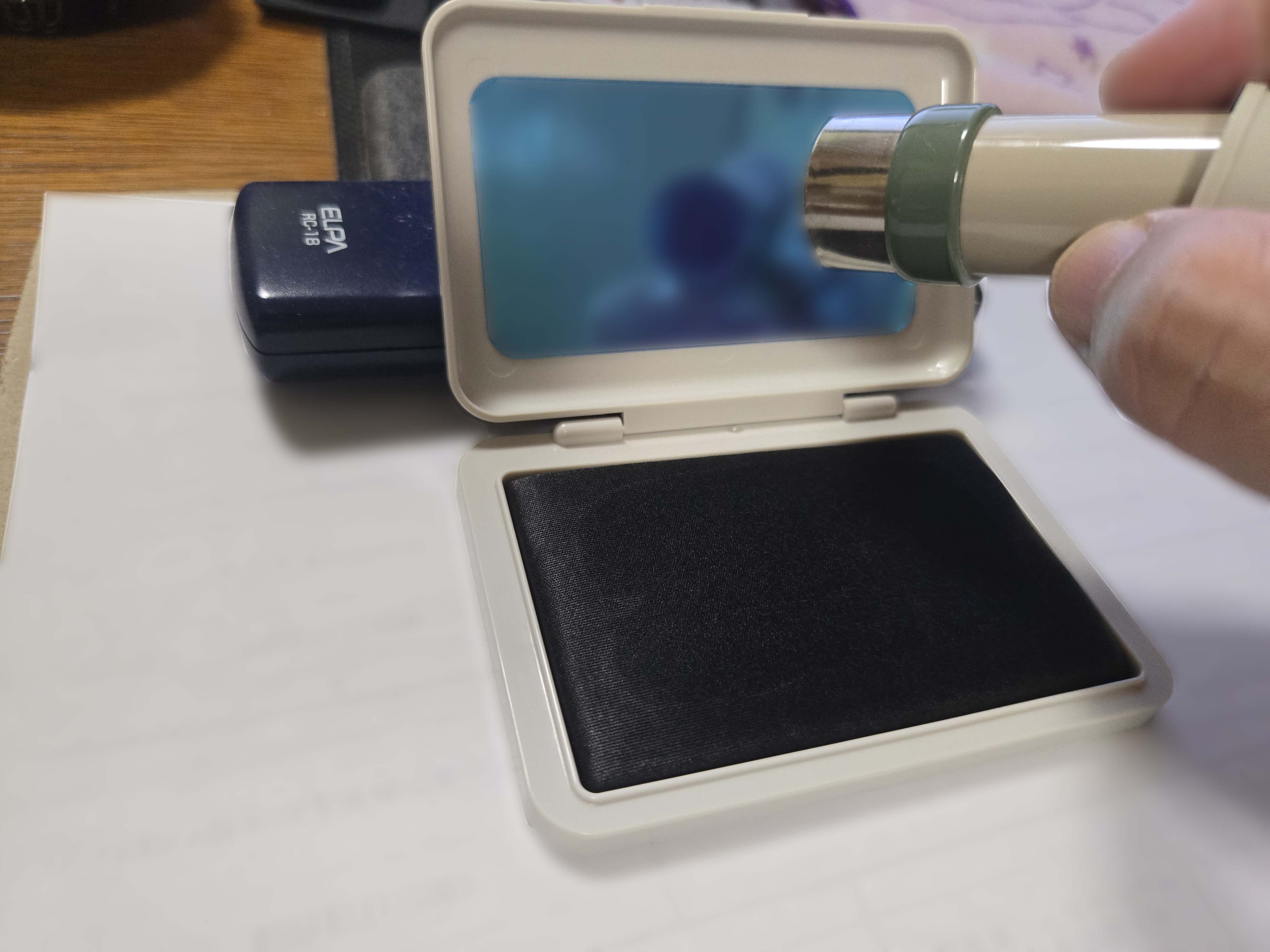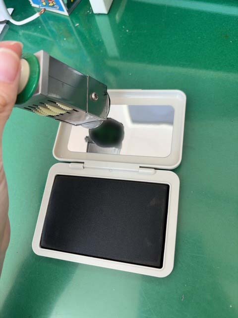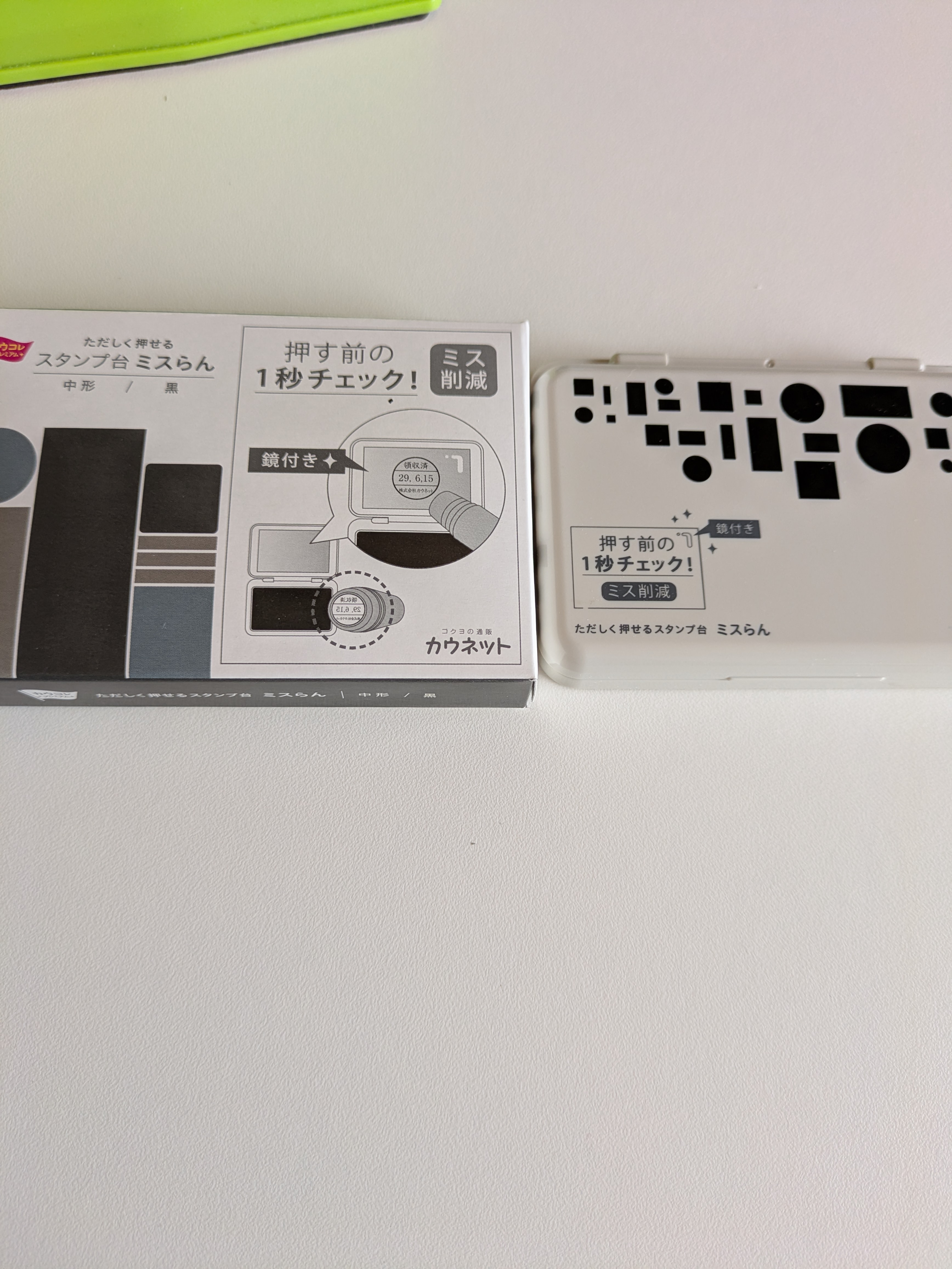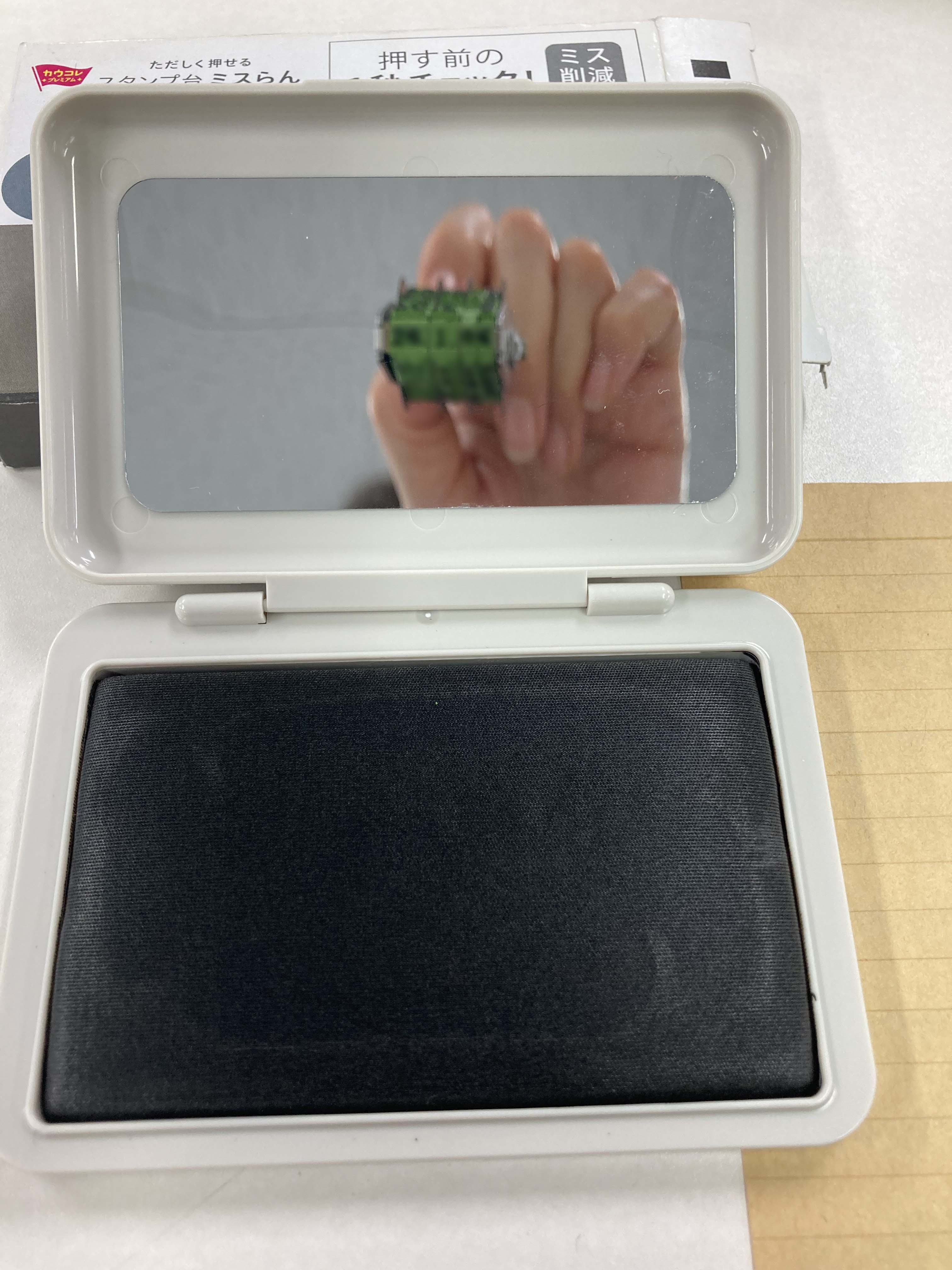 | 鏡のようなシールあるので、簡単に上下間違えなく押せるスタンプ台なので非常に便利です。 |