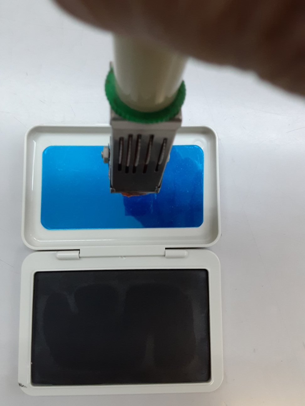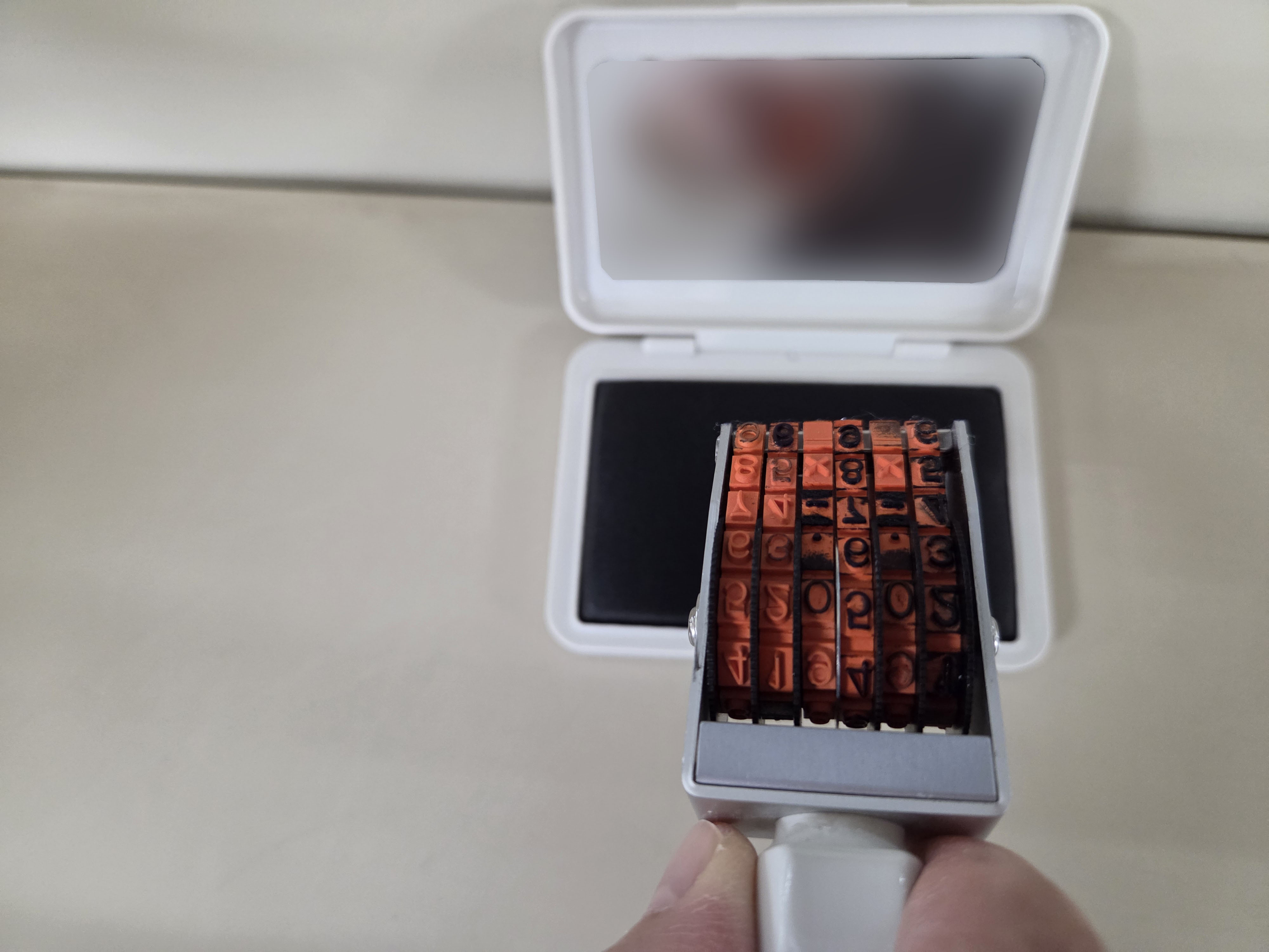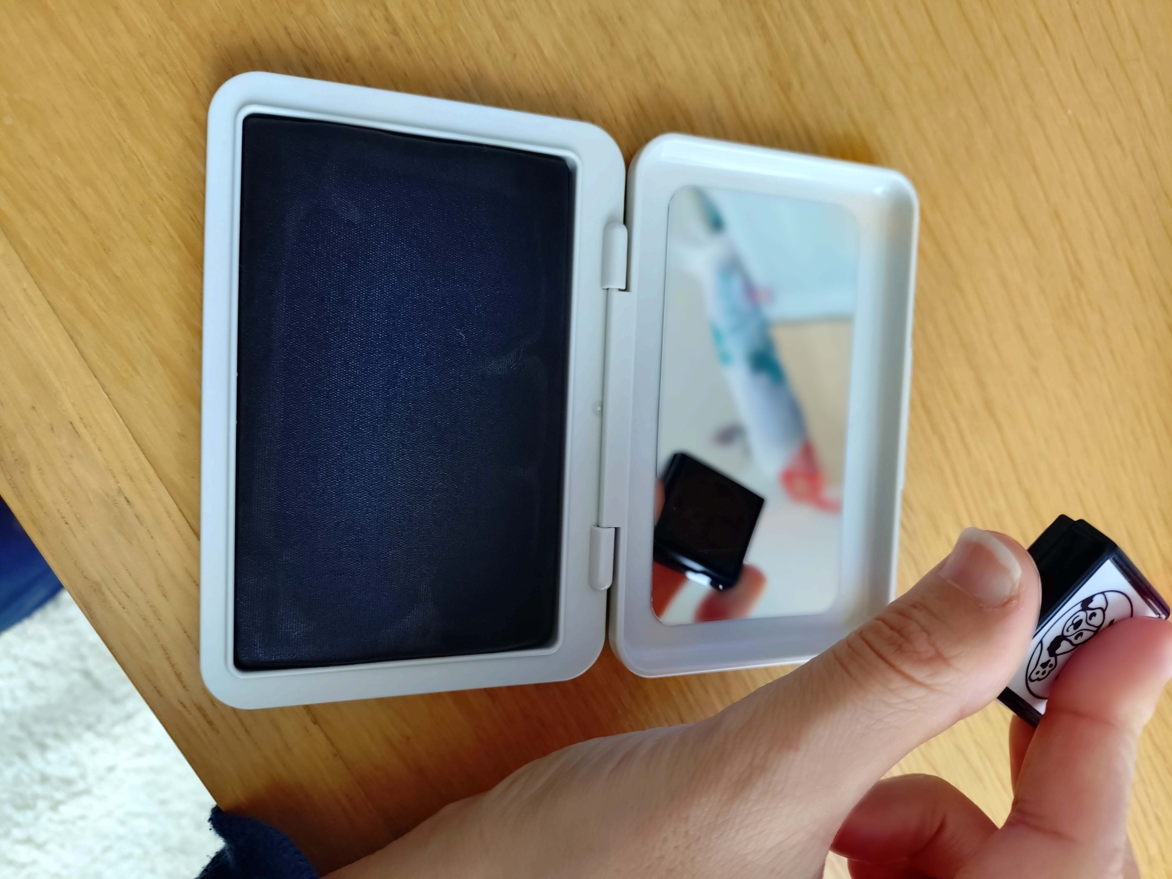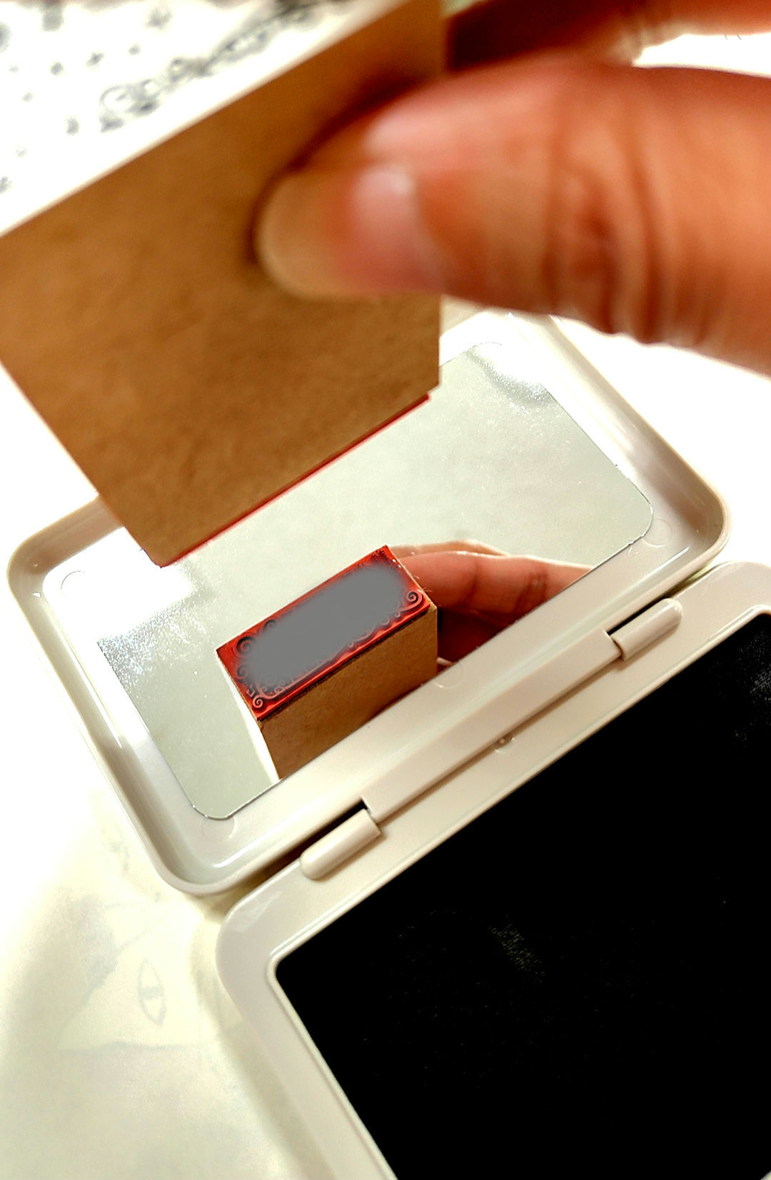 | 鏡のようなシールあるので、簡単に上下間違えなく押せるスタンプ台なので非常に便利です。 |