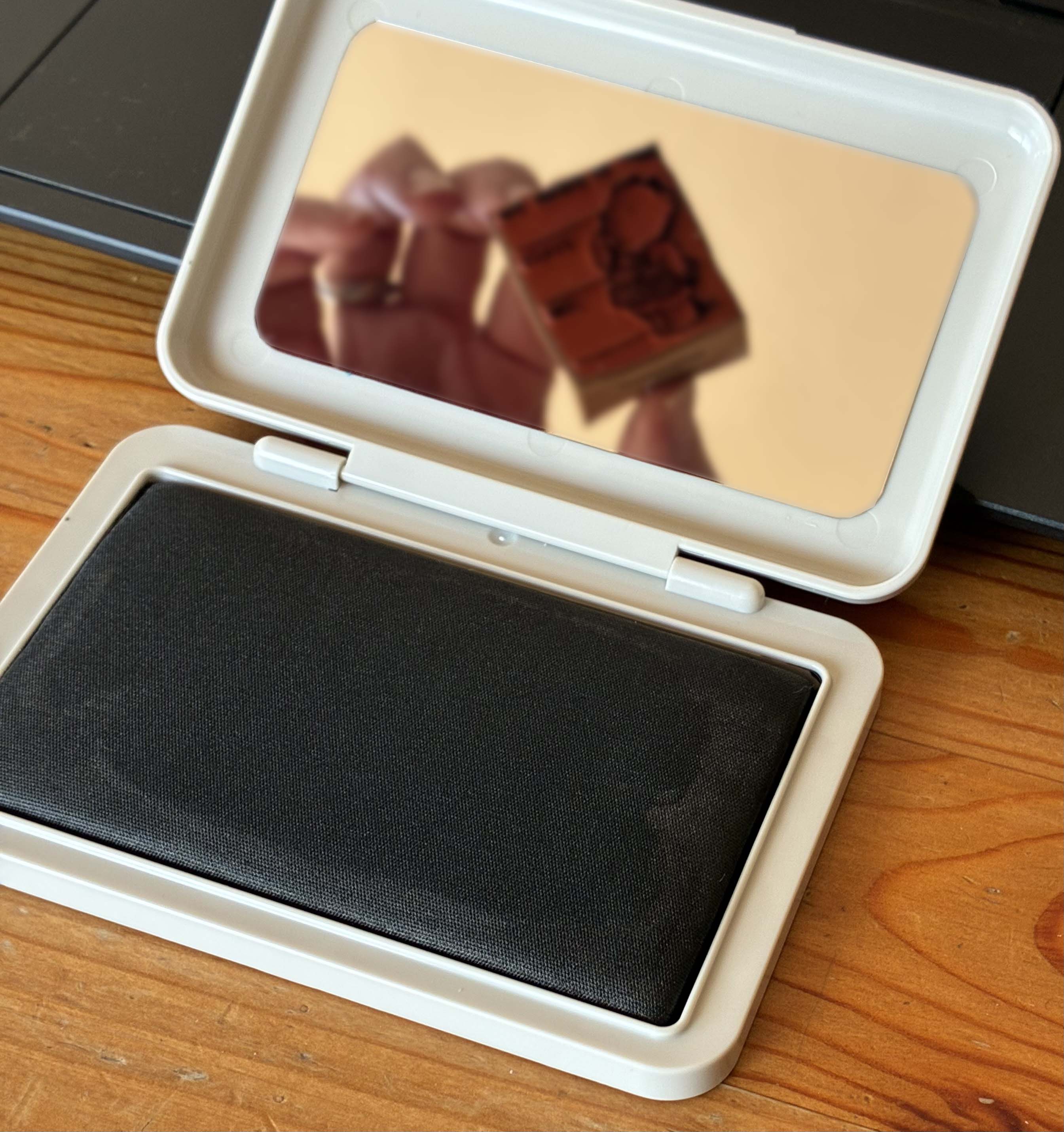 | 印面を見なくていいのは良いですが、ふたの部分に印を置いて何枚かに押し続ける場合は、すぐに鏡が汚れて使いにくくなるのでは?と思いました。 |