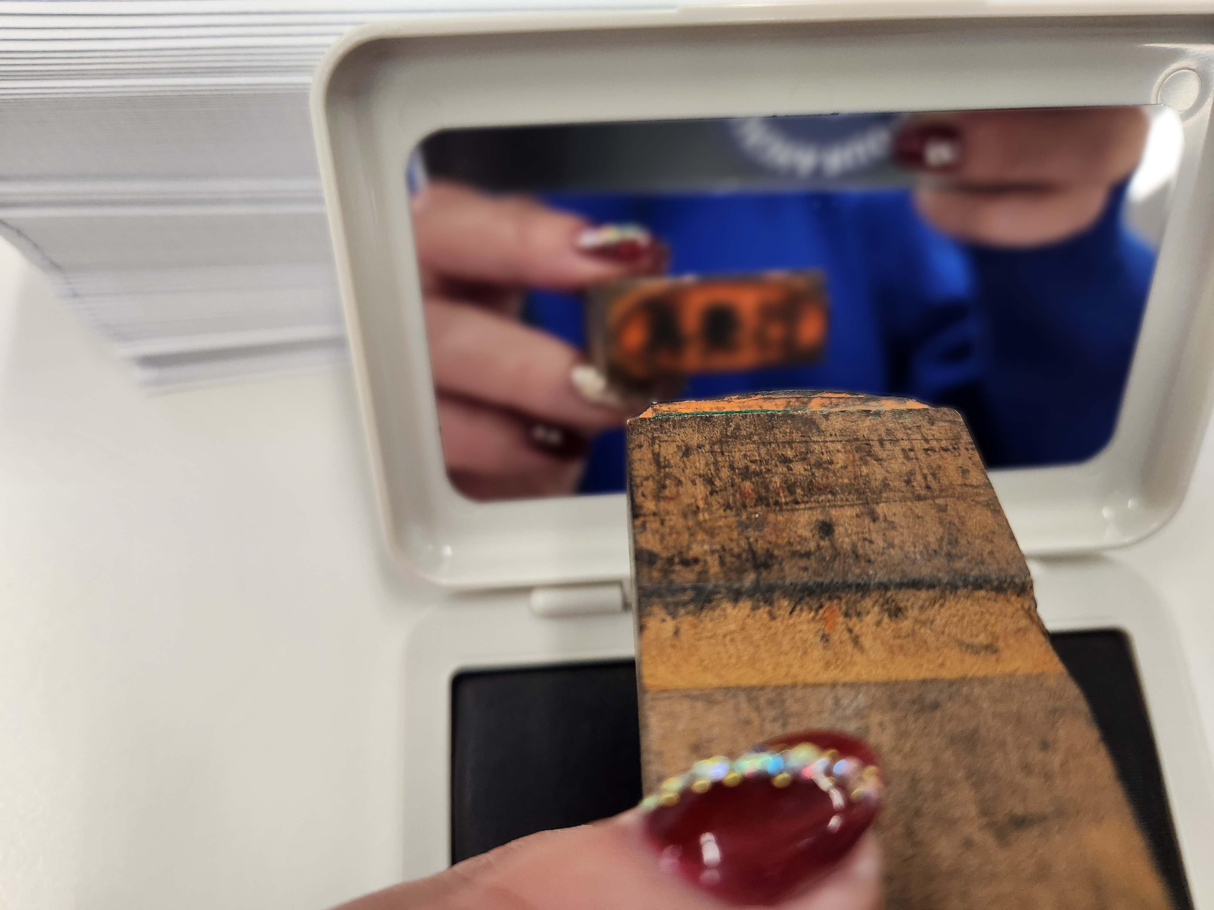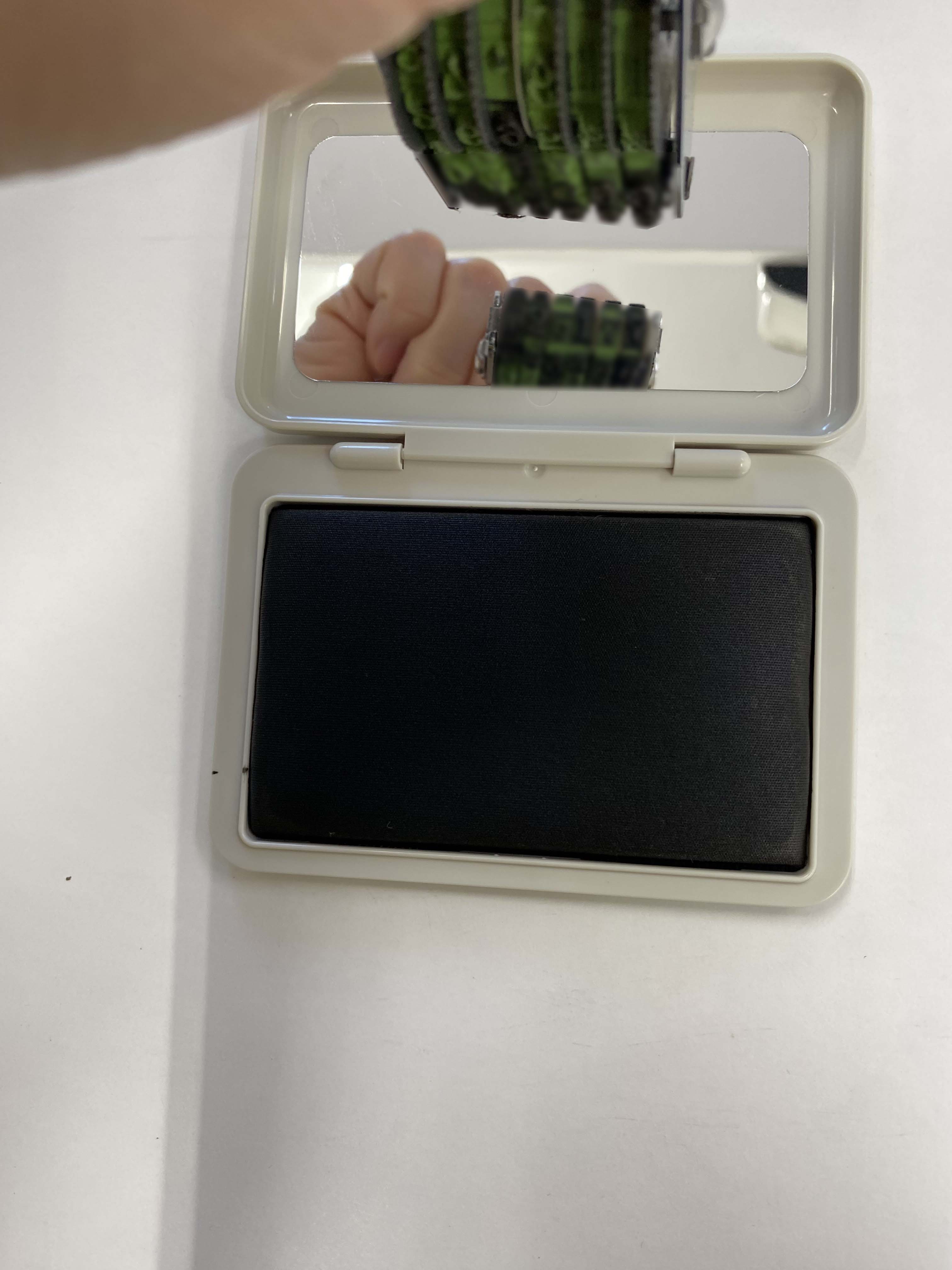| 上下がわかりづらい丸いスタンプも、鏡でサッと確認できるのが良かったです |