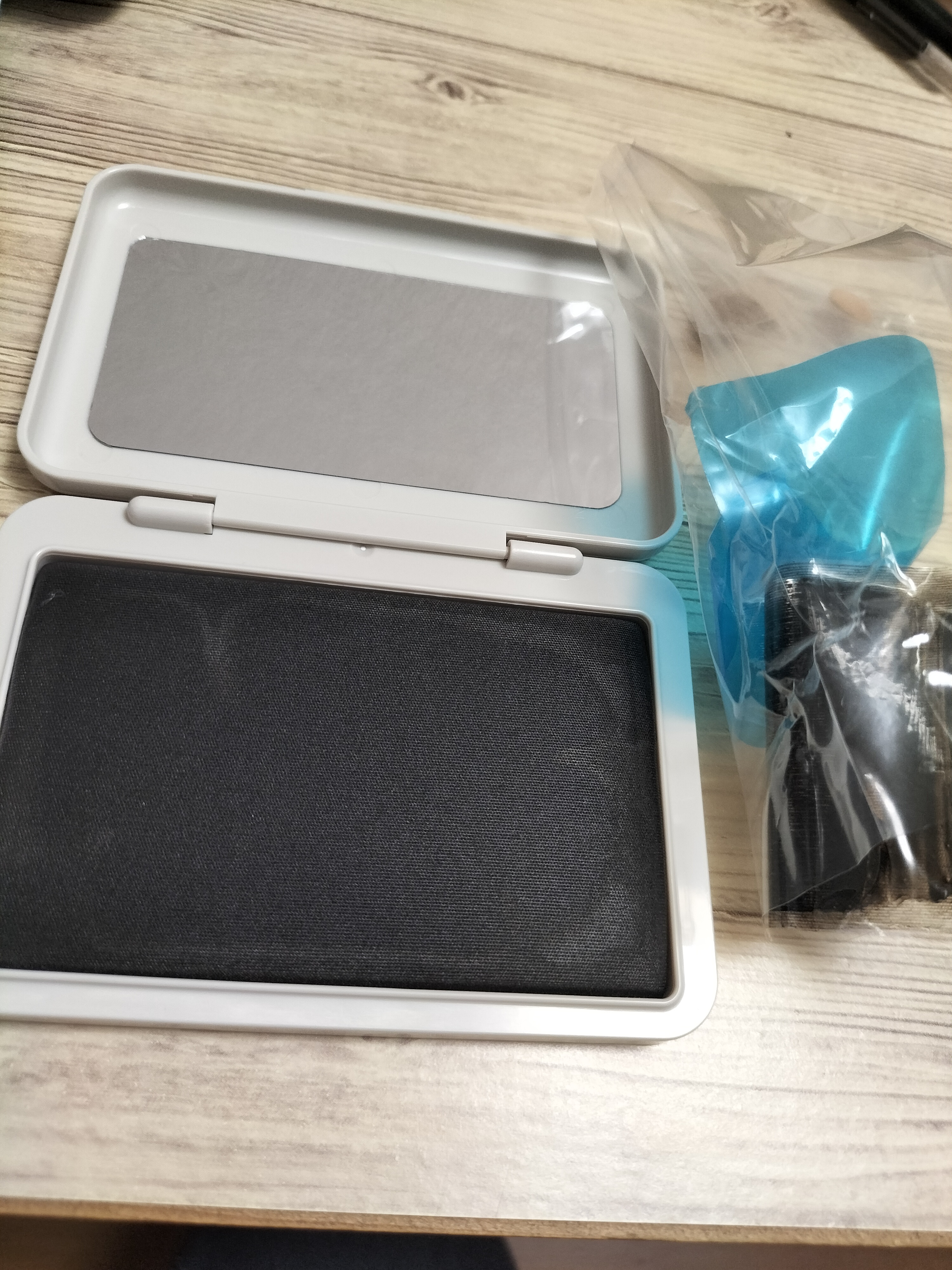 | 黒色のインキのものが届きました。 あまり黒色を使う機会はありませんが。 使った感想は、普通の名前などの印鑑には、少し押すのにコツがいるかも知れません。 鏡での確認も印鑑だといまいち濃さが分かりませんでした。 |