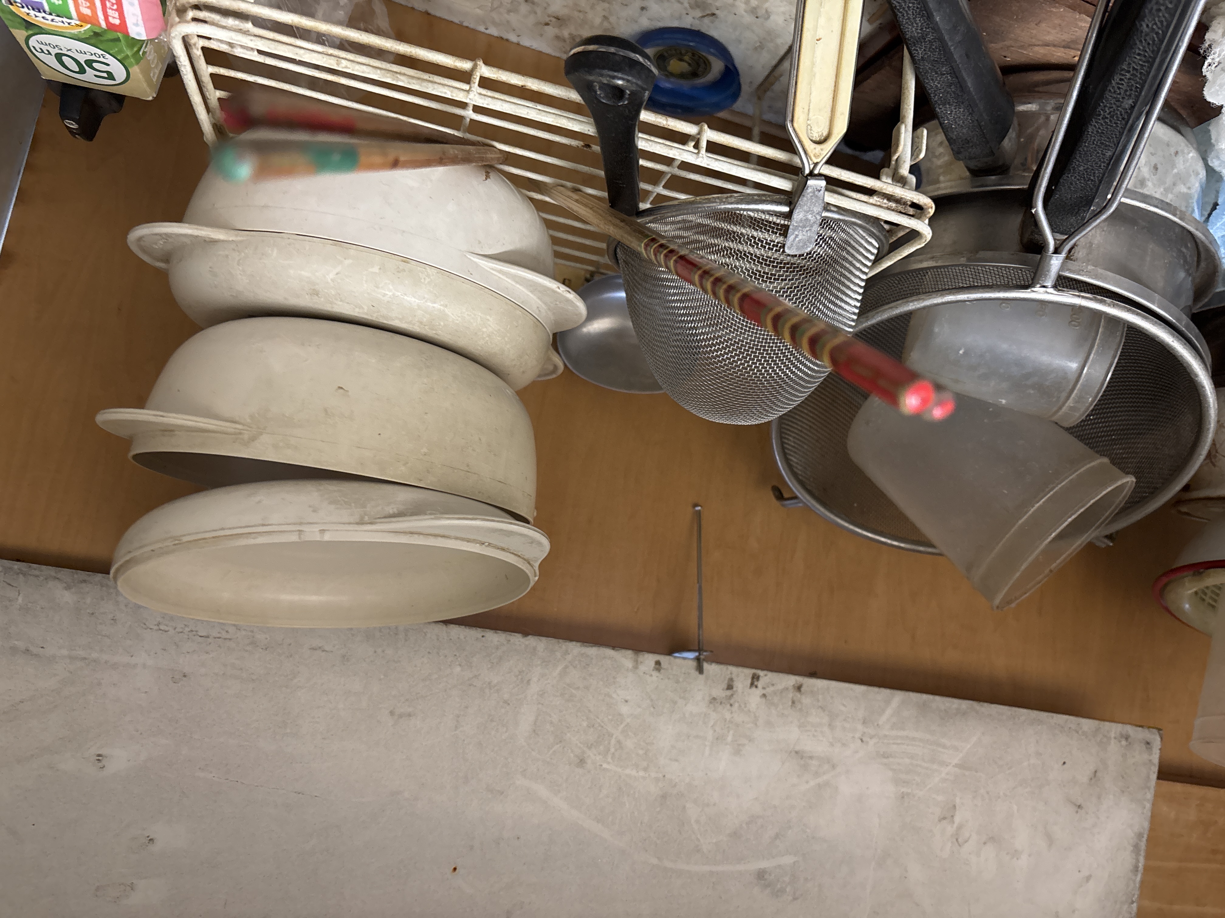 キッチンの引き出し、調理器具立て、専用ホルダーなど、