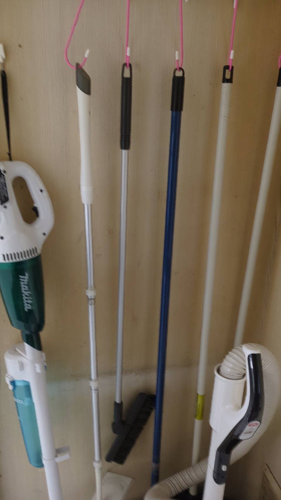 | 「掃除用具入れ」はなく、出しっぱなしになっております。気付いたらこまめに使用します。マキタの掃除機を愛用しております。 |