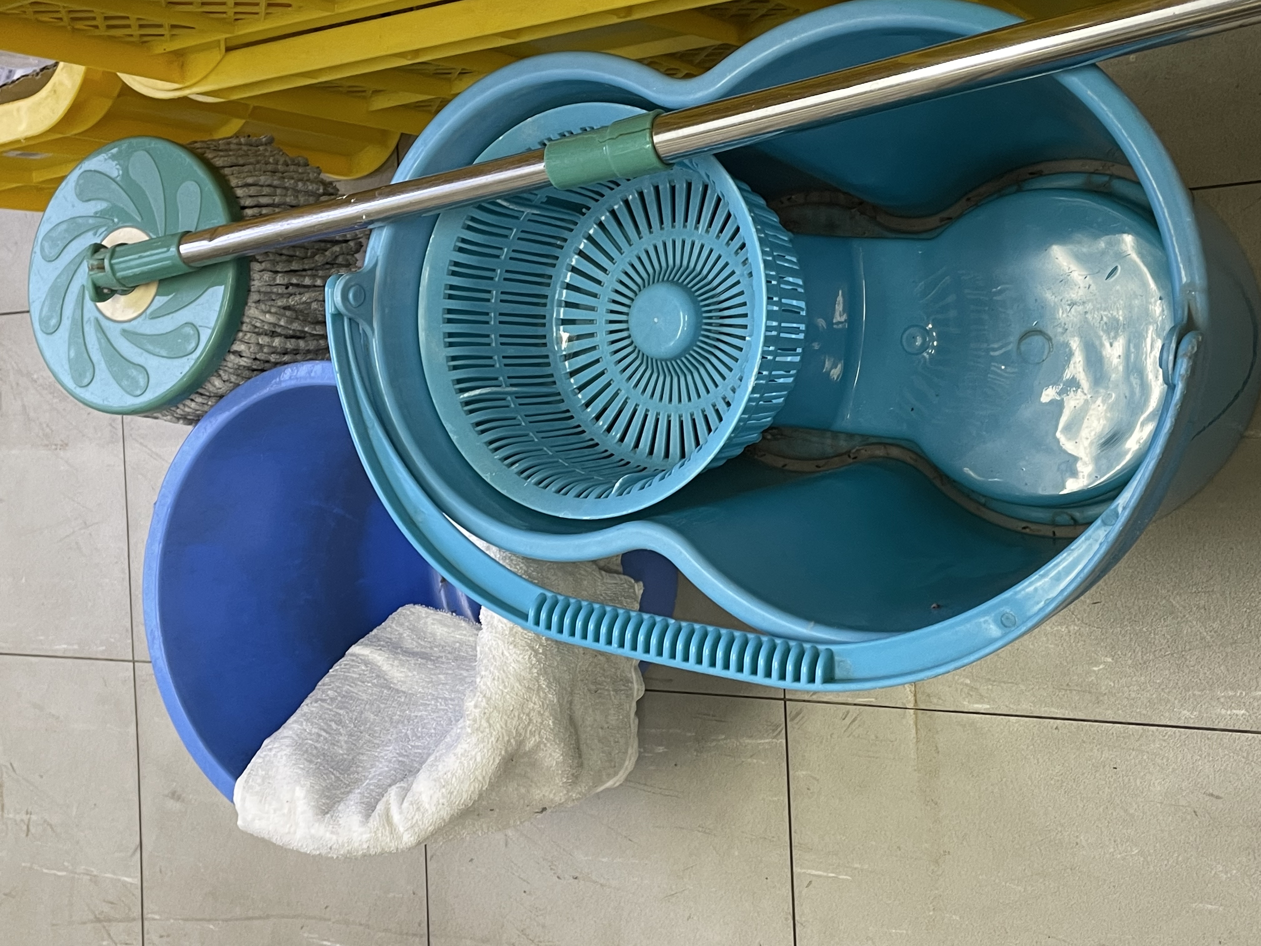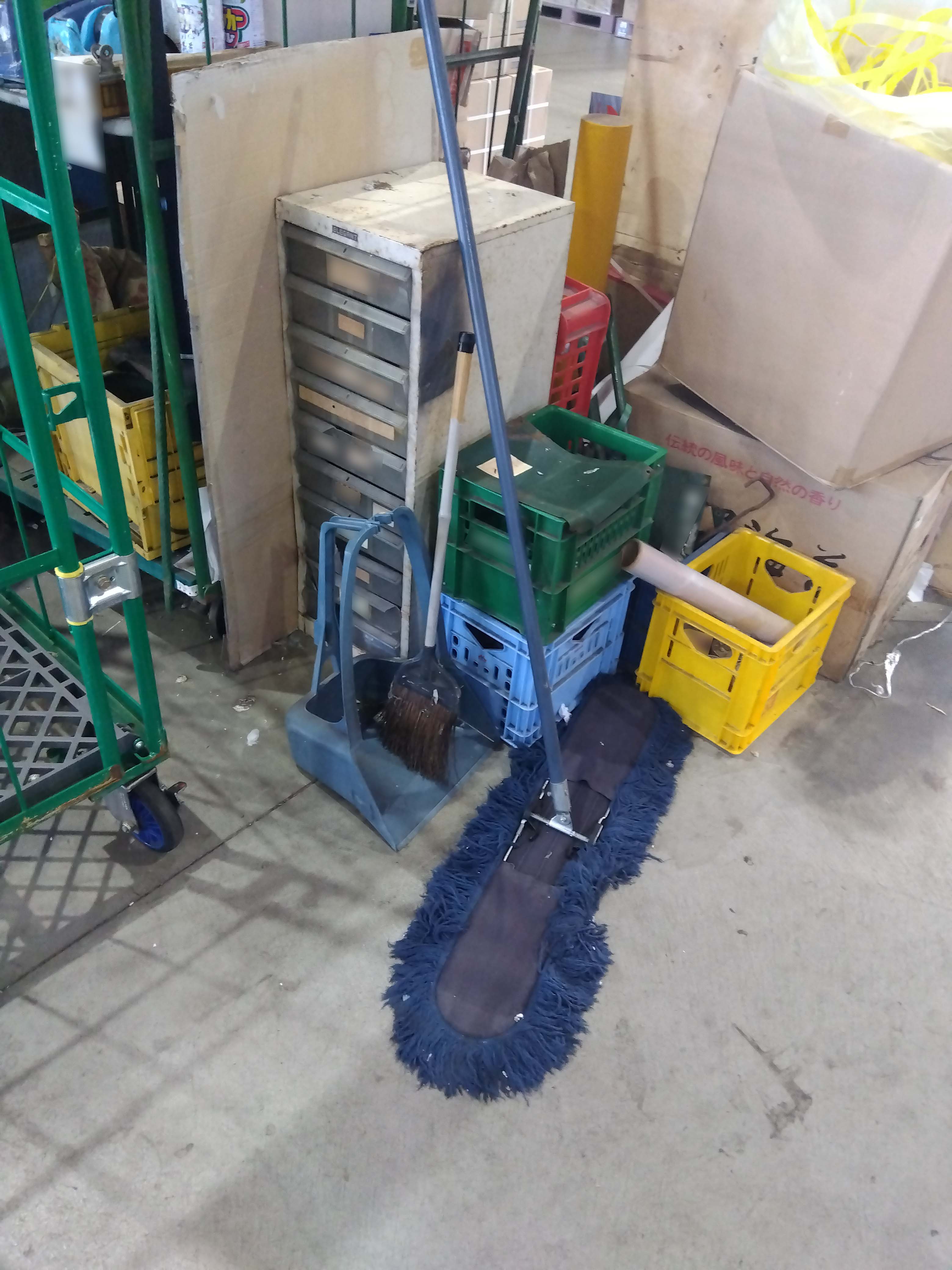 | 勤務先が倉庫になる為片隅に置きっぱなしです。モップを使用しています。 |