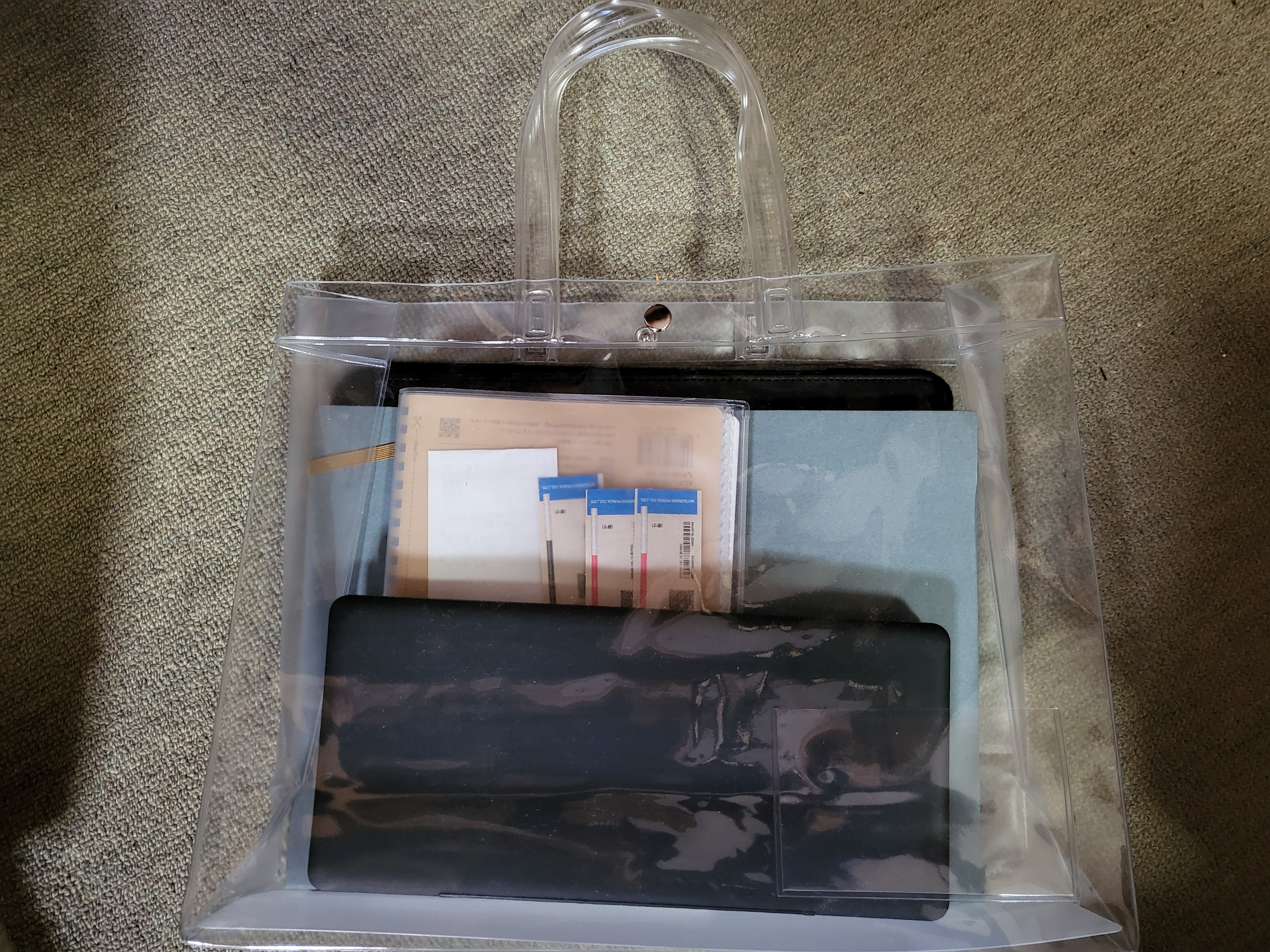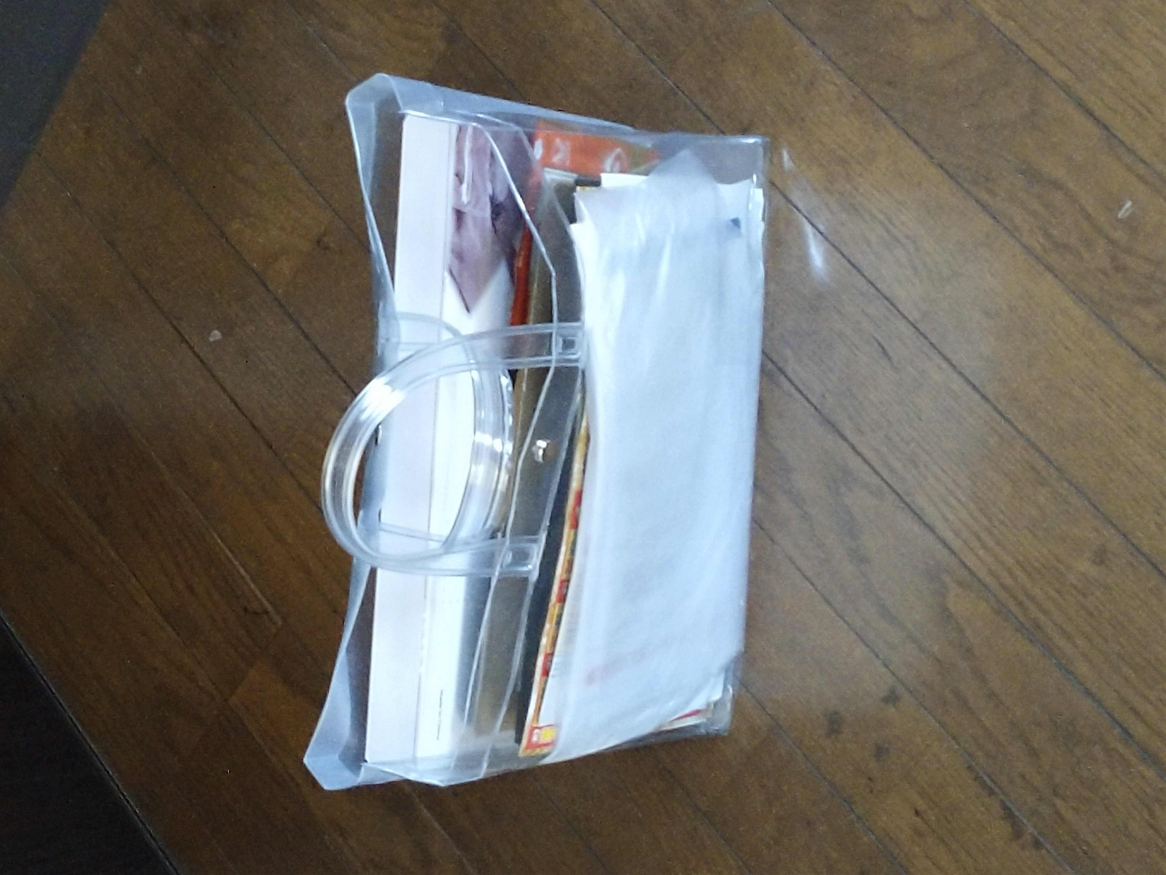 | 友達の小売りのお店の留守番にたまに行きます。個人の小さなお店なので、自分のバックをそのままシースルーバックに入れてお店に行き、到着したら中身を直接シースルーバックに移します。そうすると往復は中身が見えなくて、帰宅してもバックを取り出すだけなので便利です。サイズ的に大き目なので入れ替えが楽チンです。角が衣服に引っ掛からないように、丸いカットならより良いかもです。 |