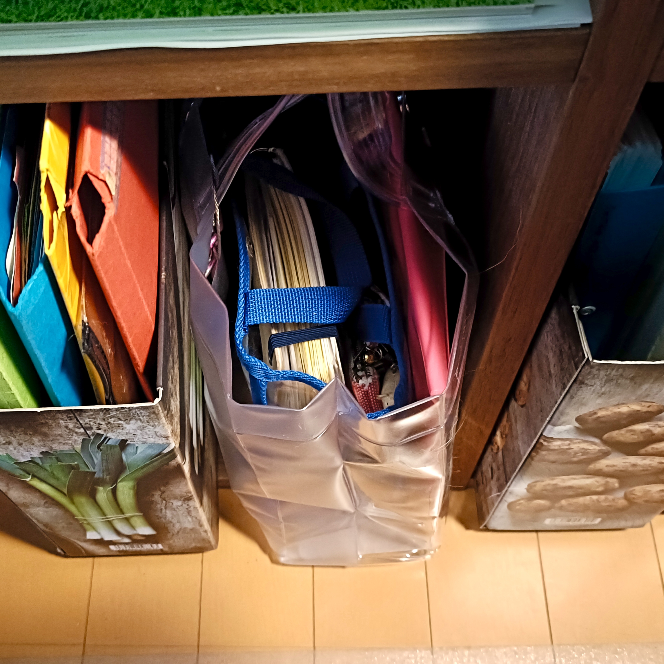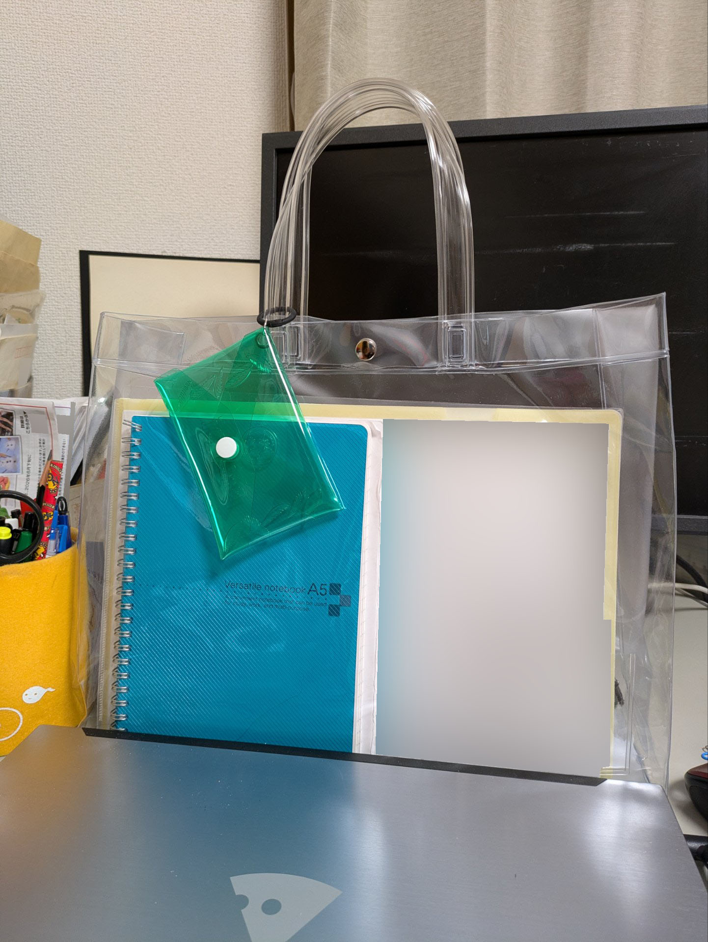 | 懐かしいプールbagの香りを感じながらA4ファイルが余裕で入り自立してくれるので良きです ただ反対側は見えにくいですがピッタリとしたら見えてしまうのでもう少し濃い半透明がいいかな トータル的には軽くてたくさん入るので便利です |