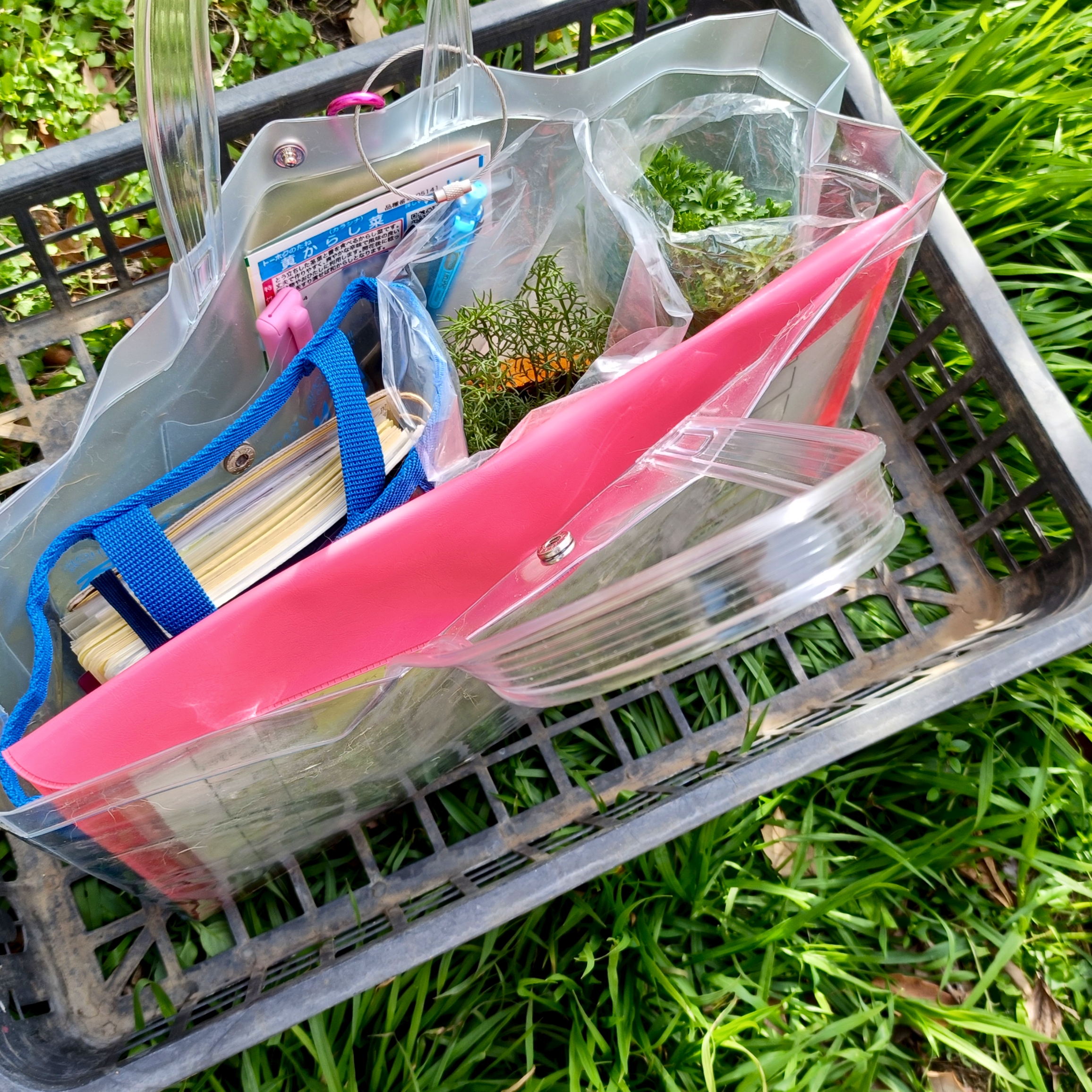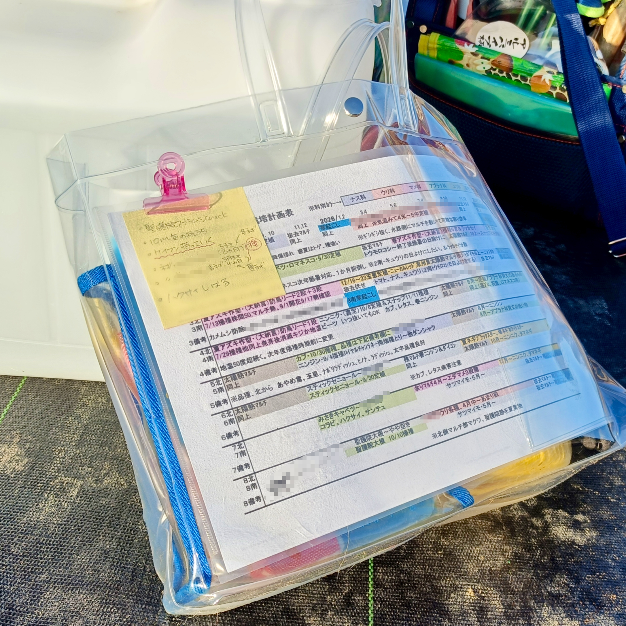 | 畑と他事業の兼業をしています。畑へ行く際の書類と小物の持ち運びに便利では?と思いモニターに応募したものです。 1週間ほど使用し、中身を都度入れ替えています。写真1枚目から解説していきます。 1枚目、元々使っていたカバンの画像。困りごとは泥汚れ、資料を見る都度軍手を外して中のメモを確認する必要があり面倒なこと、中身が見えないのでたまに忘れ物があること でした。 2枚目、シースルーバッグ 運用ver1 上から見た図 苗がコケてない事を外からでも確認できます。タマネギ苗なら300本入りました。内ポケットにピンセット、カッター、ボールペン、種。 種は外からでも見えるのでまき忘れ防止にも良いと思います。泥が付いた時もこぼれた時も丸洗いして拭けばOKなので気楽です。見えたら困る書類の時は不透明のファイルに入れたらOK 3枚目 運用その2 軍手を外さずに作業表を見ることが出来ます。仲間と資料を共有するにもとても便利。小さい物も外から見えるので探さなくて良く、Good! 4枚目 普段はデスク横、書類棚の一番下の段に配置。 A4ファイルケースに近しいサイズで棚にフィット。都度必要な物を足していけるので忘れ物の防止に最高でした。A4ファイルが入るのもとても良かったです。 5枚目は今日のシースルーバッグの中身です。これだけ入ります。他にタマネギの苗とペットボトル1Lが1本入っていました。苗は植えちゃったのと、ボトルはのみかけなので写真から外しました。 良かった点 忘れ物防止に置きやすいサイズ、視認性。 中に泥のついたものを入れたいタイミングが度々あり、汚れても乾く時間など考えずに容易に水洗いが可能なのは最高。 中の物の状態を確認しやすい素材。苗がコケてないのをカバンの口を広げなくても見える。 5キロ程の荷物が入ってもビクともしない頑丈さがあった。 要望 たすきがけできるようにしてほしい。トートがけできるサイズの存在は知っていますが、耐荷重に不安がある。荷物を持った上で、両手が空く必要がある。 内ポケットをもう少し大きく、深く、仕切りをつけてほしい。 ペンが倒れ&底が突いてしまう。希望の内ポケットサイズはA5横サイズで端っこ5センチをペン用に仕切る、くらいの感じ。 これなら野帳の頭が出て、かつペン類が横に倒れず挿せると思います 総括 使いやすくて、丈夫で、洗いやすくてとても便利でした。忘れ物が一つも無かったのはすごい。 肩掛けしたいので、レビュー後ちょっと改造して使い続けたいと思います。この度は私を選んでいただいてありがとうございます。コクヨさんの益々のご発展を願っております。 |