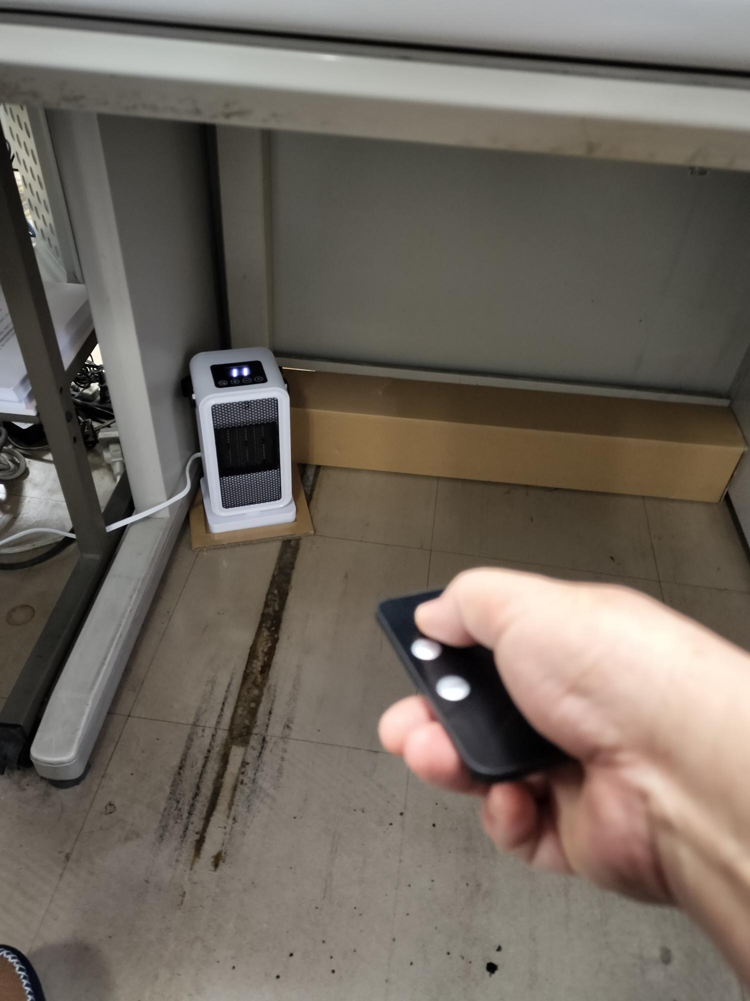 | 職場の床がPタイルなので底冷えと隙間風で足先が常に寒いため、今回、小型のセラミックヒーターを購入し机の下に足元対策として設置しました。電気ストーブとは違い温度設定も出来るし赤くならないので火傷の心配もないです。足先が温まると体も温まる気がします。 |