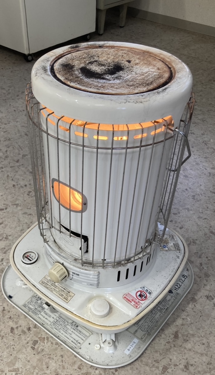 | 休憩室の隅に置いてあるアナログなストーブです。 |