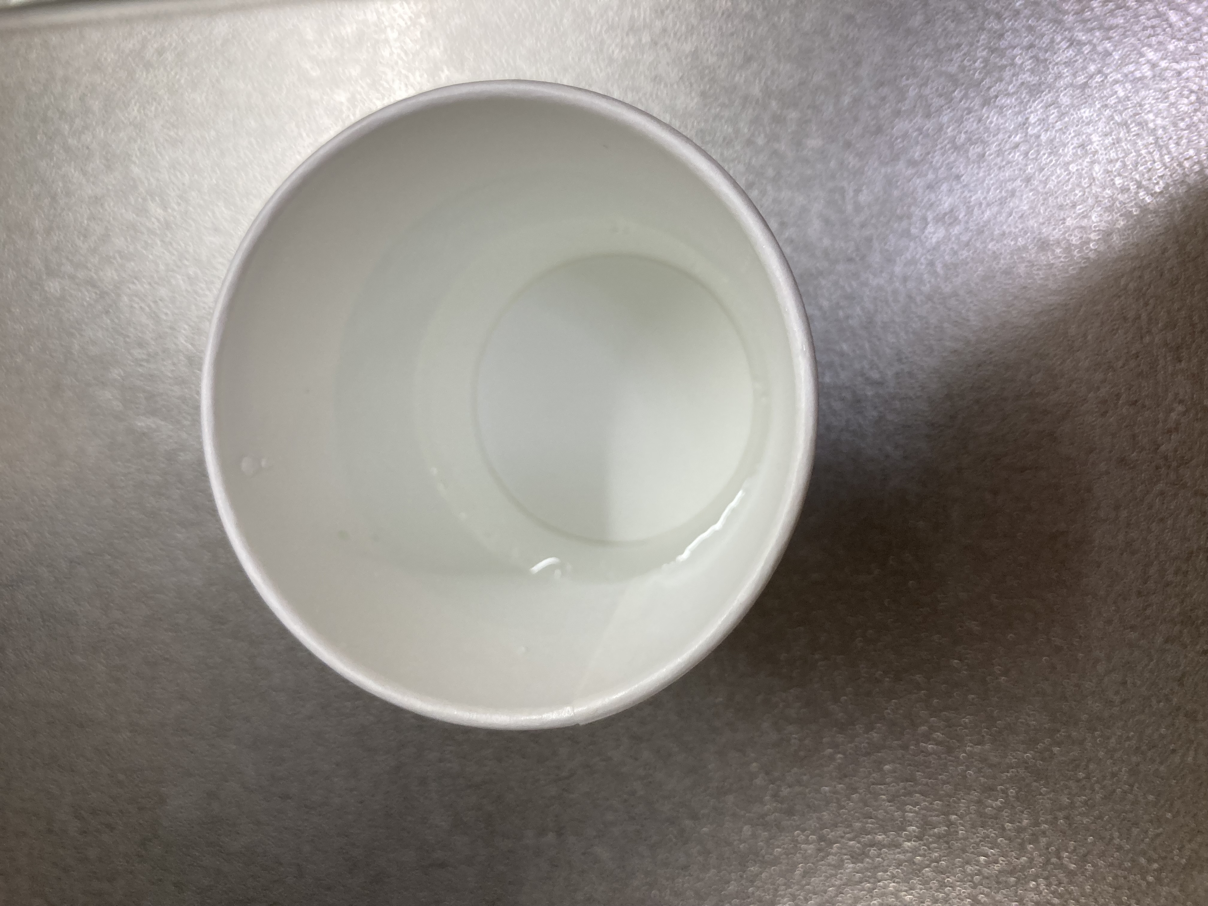 | 明るいところででないと、量が分かりにくかったです。 素材が透明になるか、内側に印を入れるかの方が良いと思いました。 どっちにしろ、うがいだけのために使い捨ての紙コップを使うはエコではないなぁと思いました。 |
