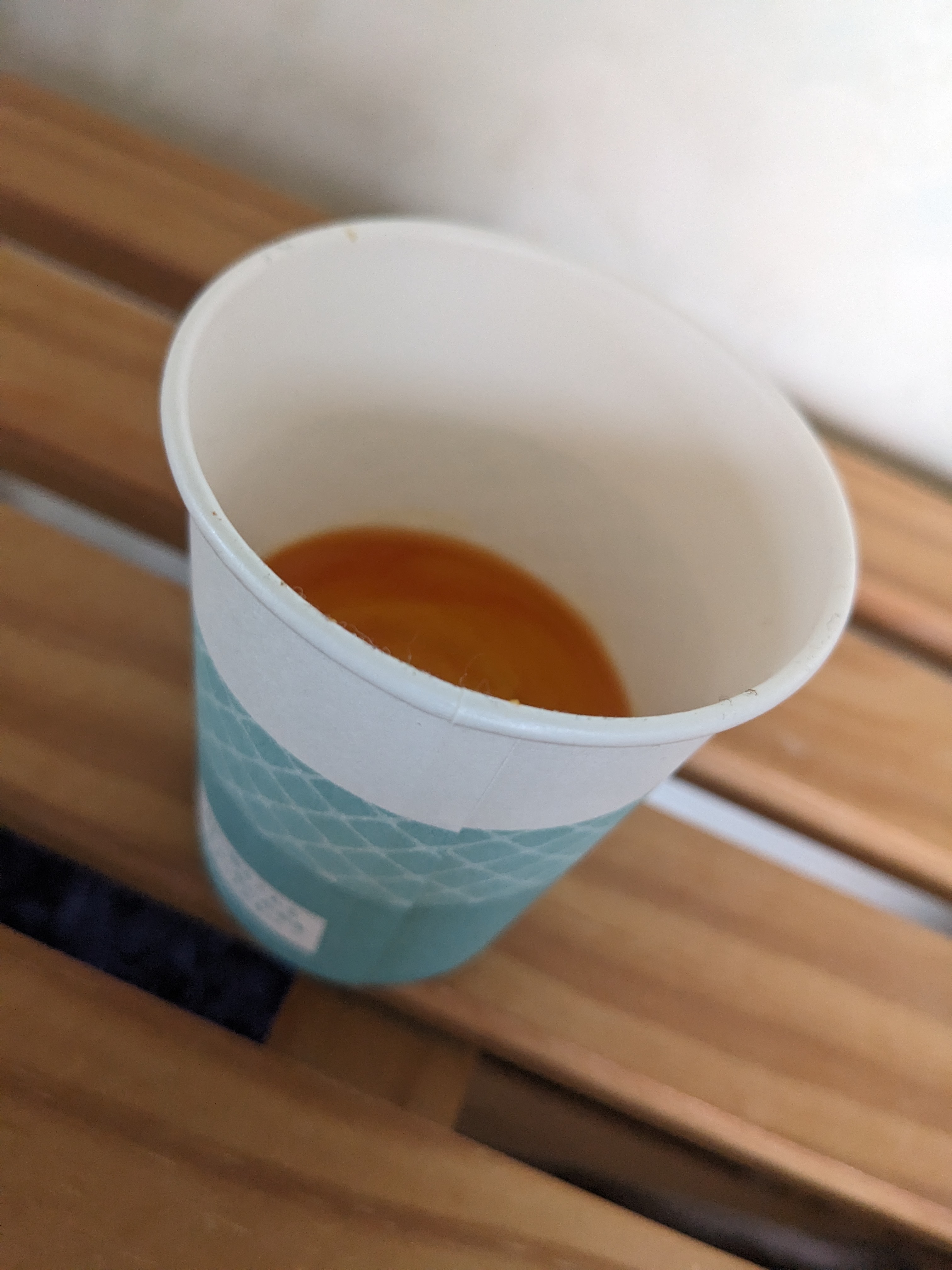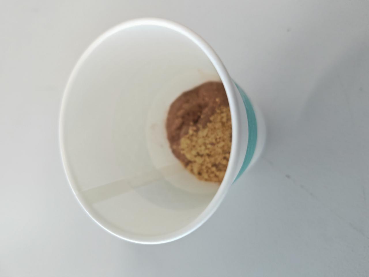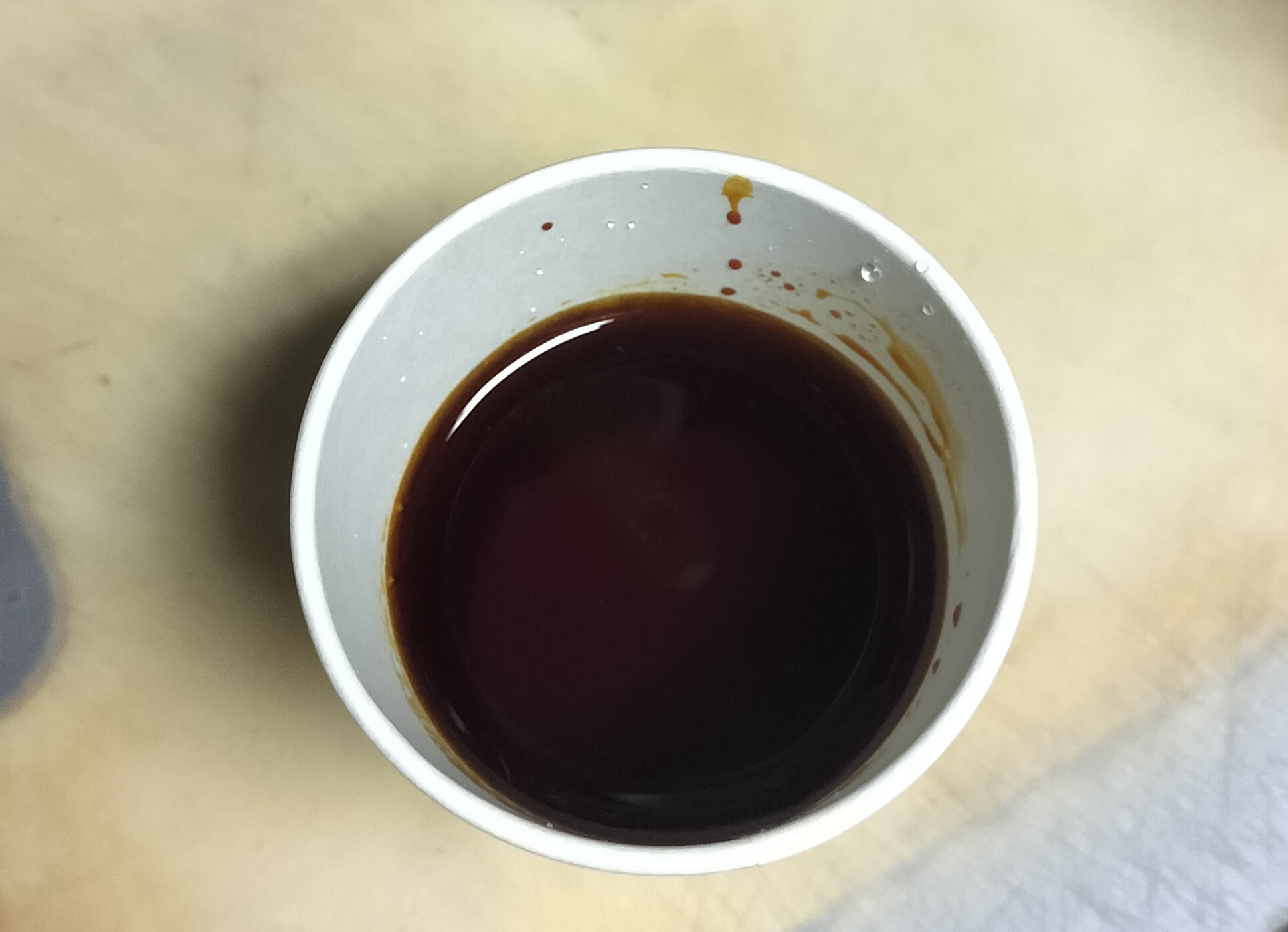 | うがい薬の習慣がないので、割るだけコーヒーに使ってみた。 ペットボトルに目盛りはついているけど、紙コップの目盛りラインの方が見やすい。 紙コップの中にもラインだけでも引いてあるともっといいと思う。 |