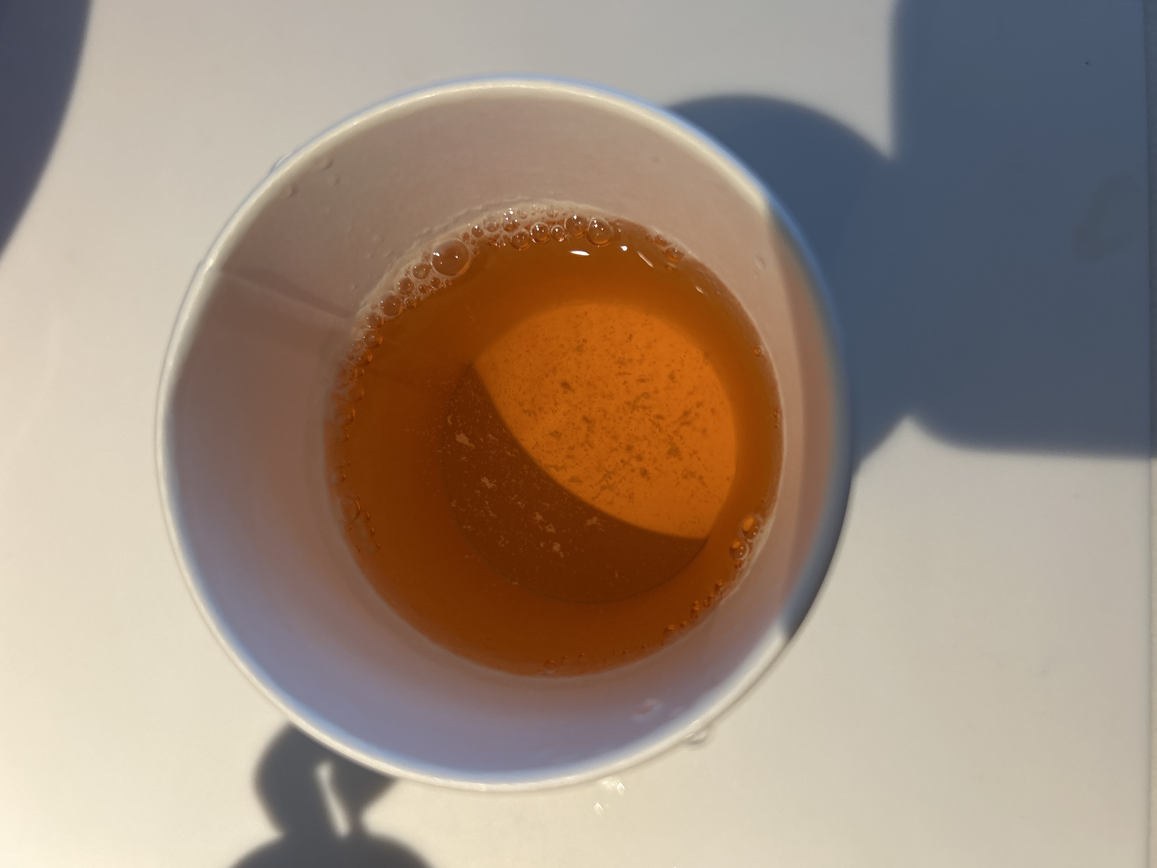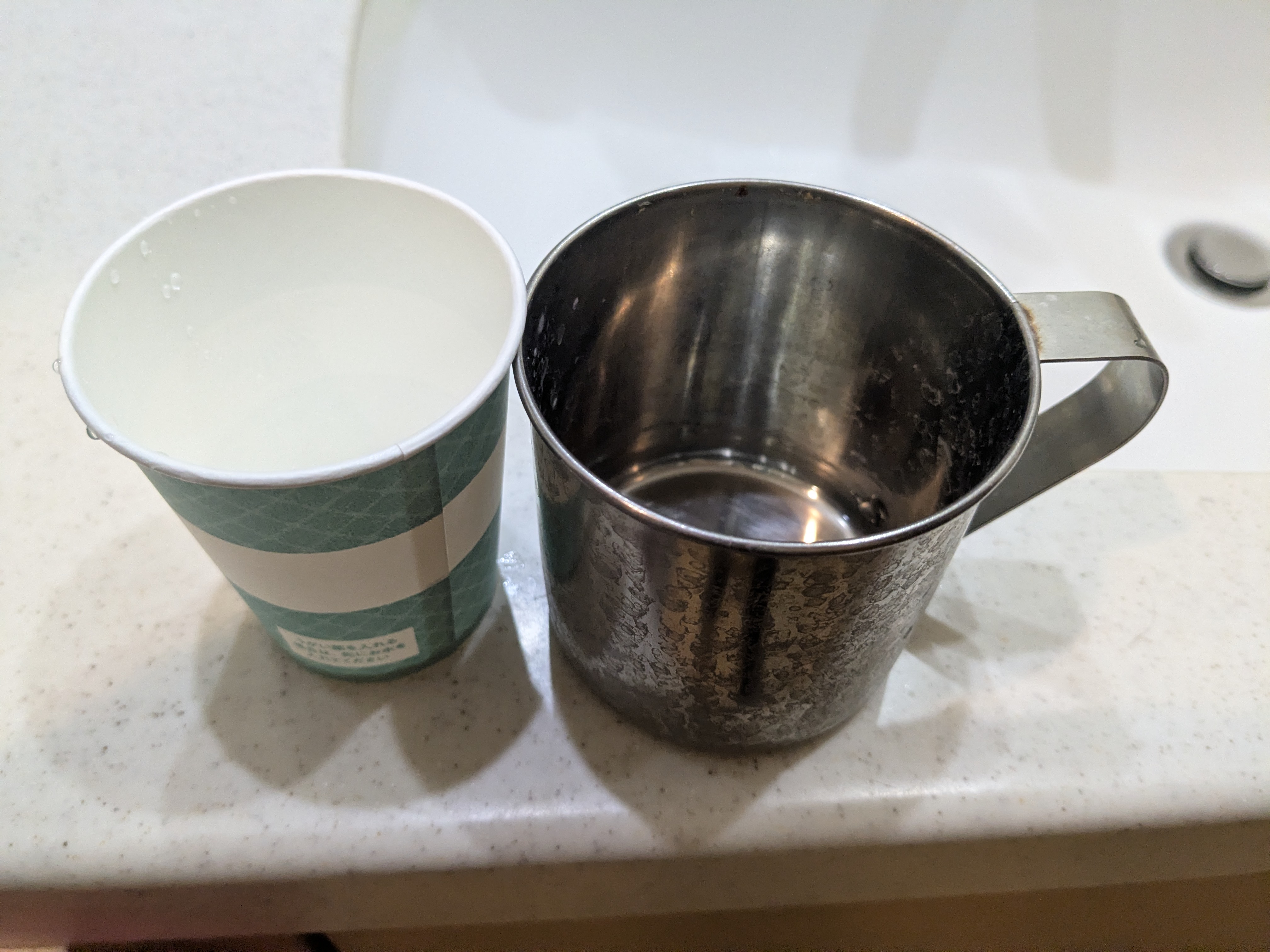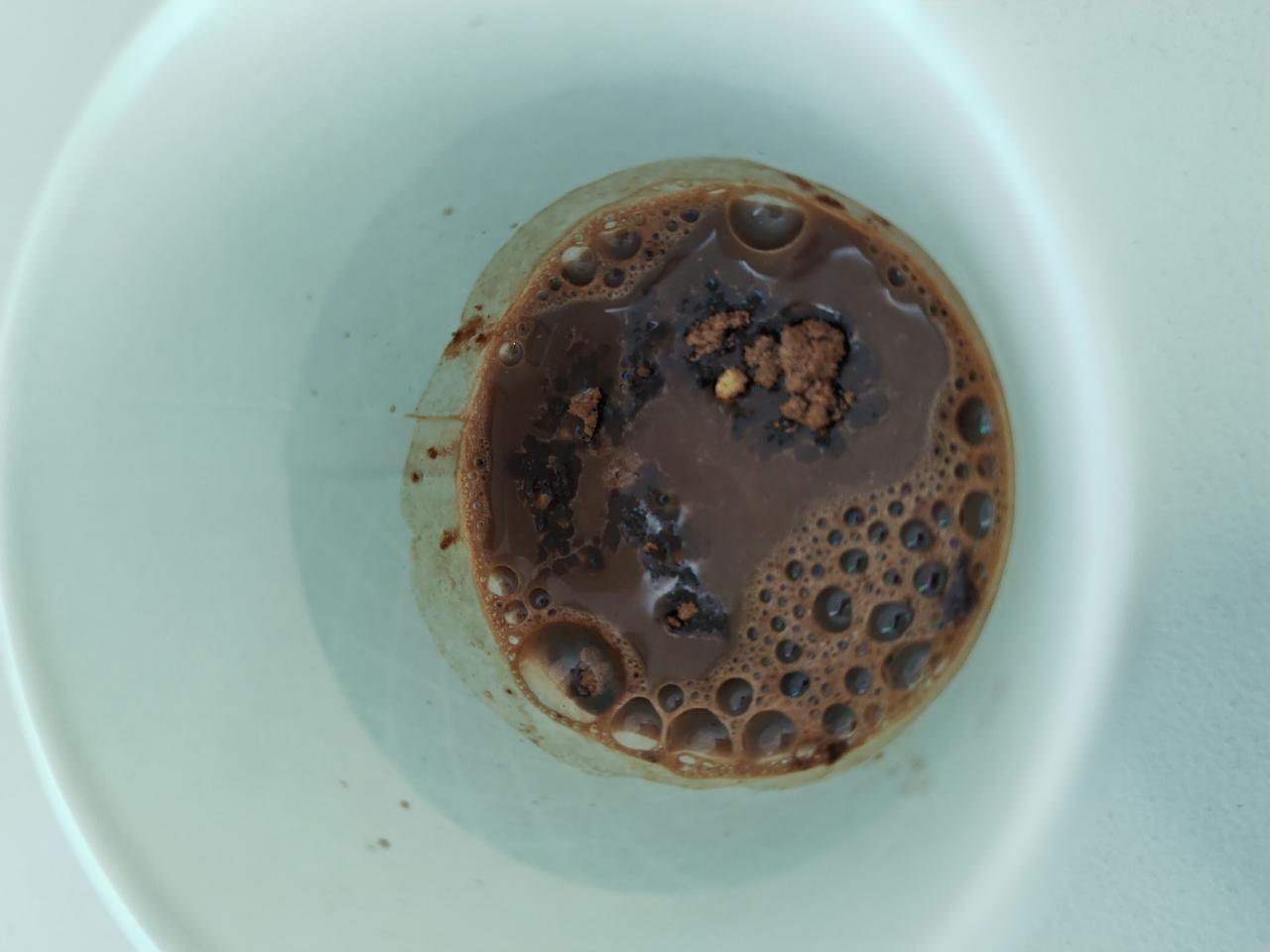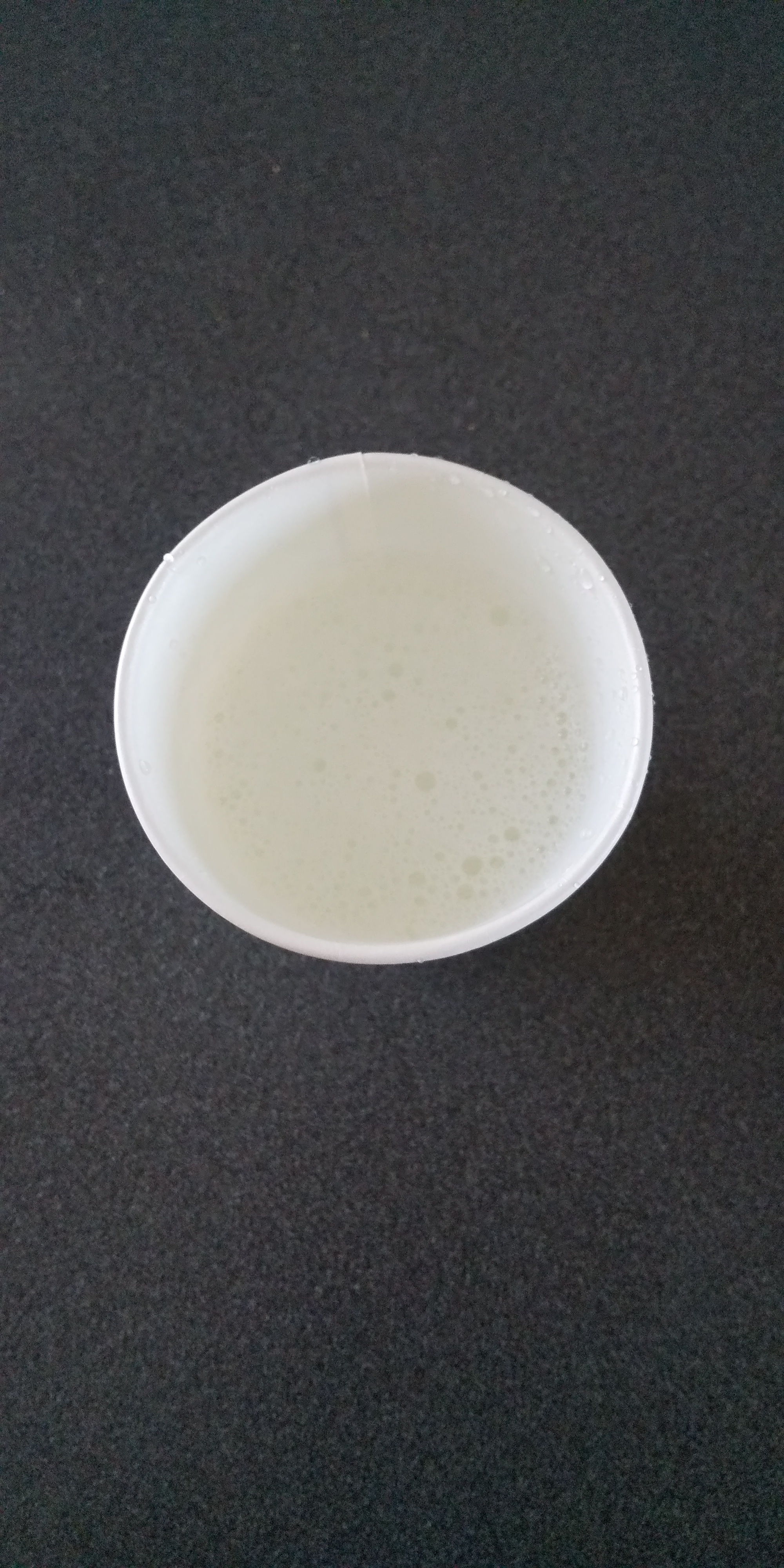 | うがい薬の習慣がないので、割るだけコーヒーに使ってみた。 ペットボトルに目盛りはついているけど、紙コップの目盛りラインの方が見やすい。 紙コップの中にもラインだけでも引いてあるともっといいと思う。 |