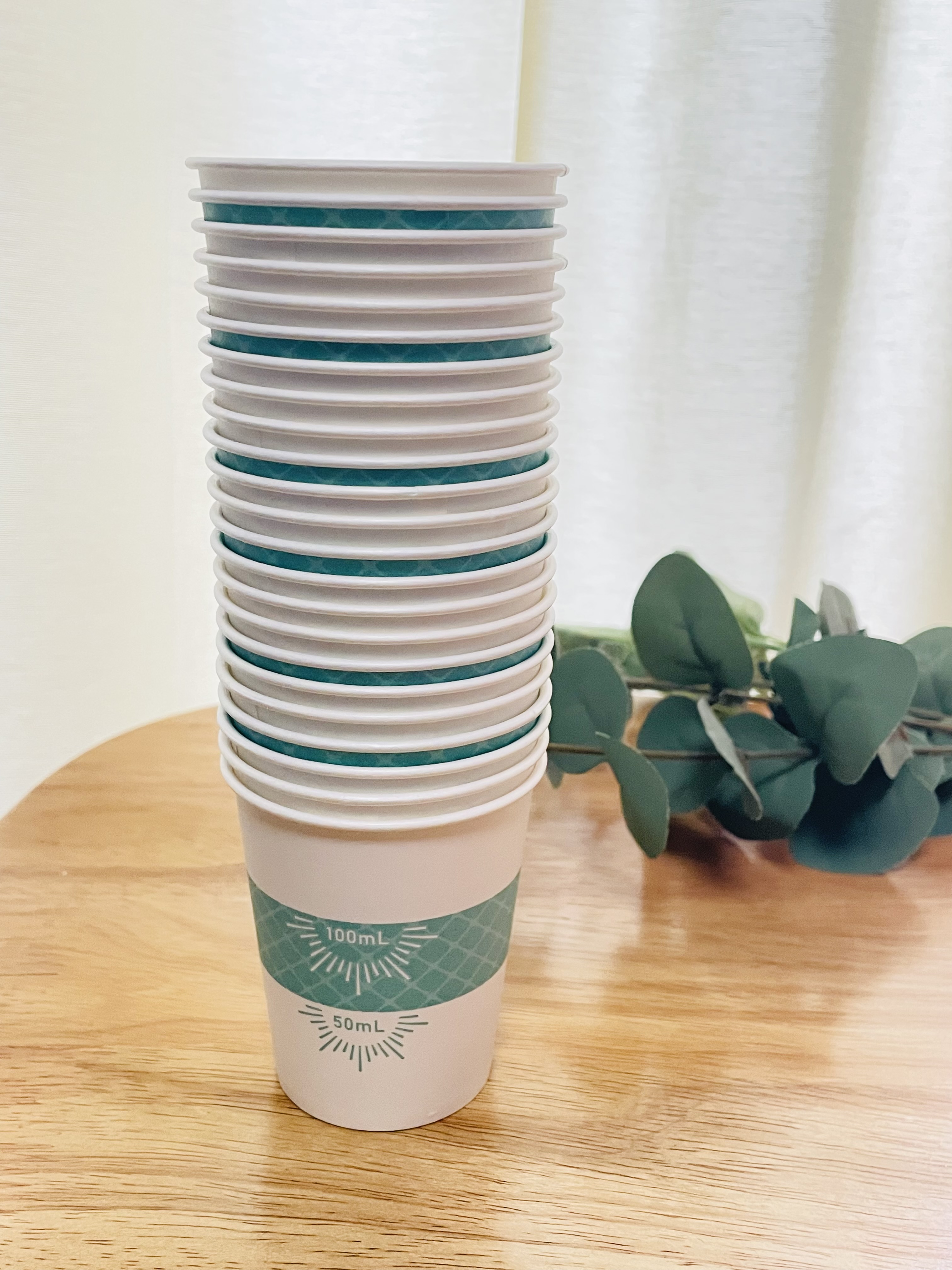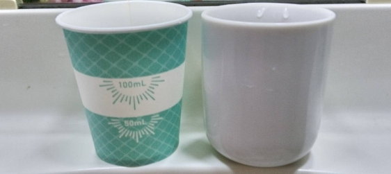 | こう言った紙コップが有れば本当に有難いです 使いやすく、分量も間違う事なく注げるので良いです 出来れば50と、100の目盛りのところに手で触っても分かるような工夫が有ればなお、良いかと思う |