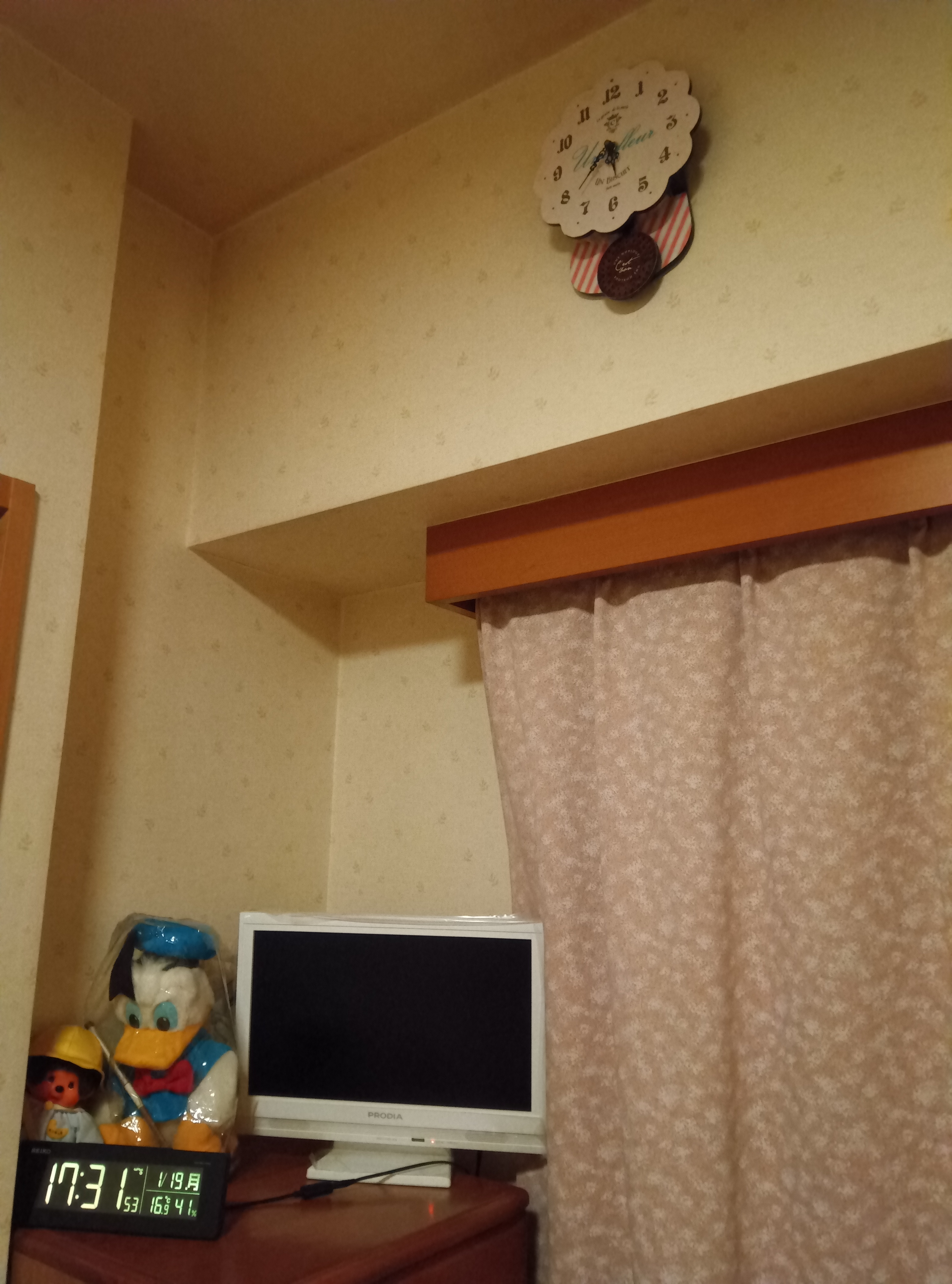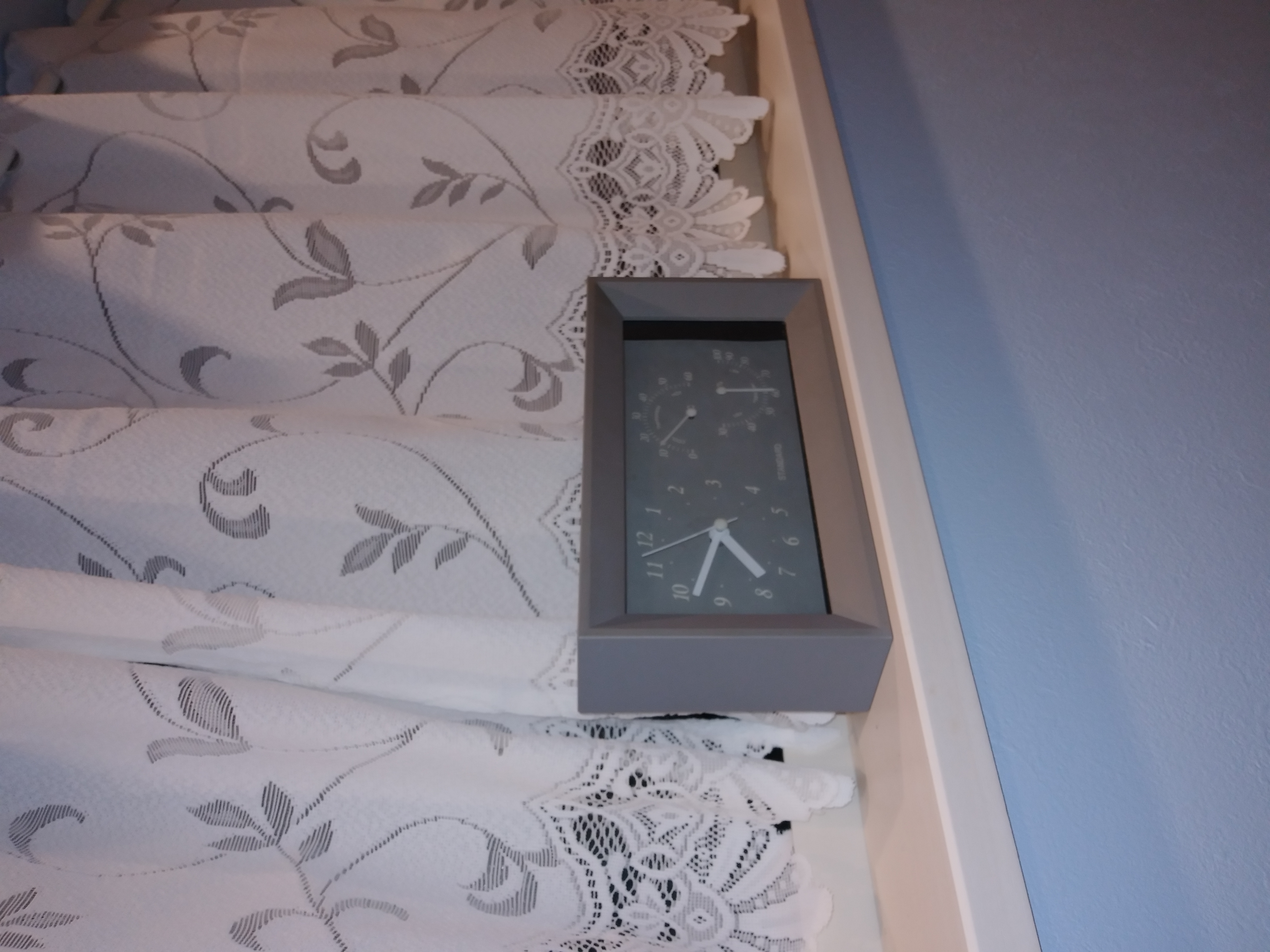 | ニトリで買った温度計も付いた置き時計を置いてます。 |