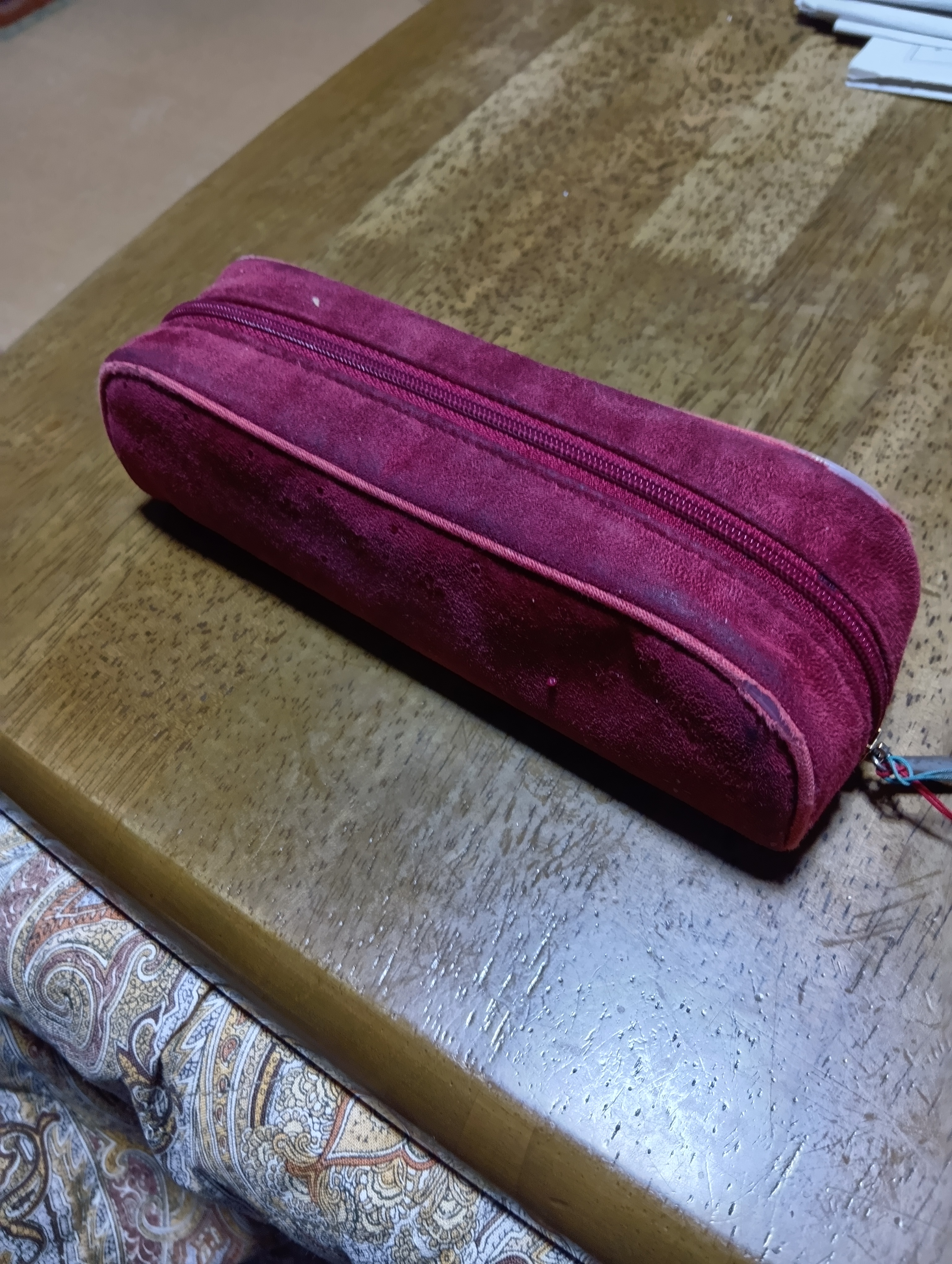 | 未だ現役で仕事している時から、使っているペンケース。持ち運びしても音がしないのでとてもよいです。時々は洗っています |