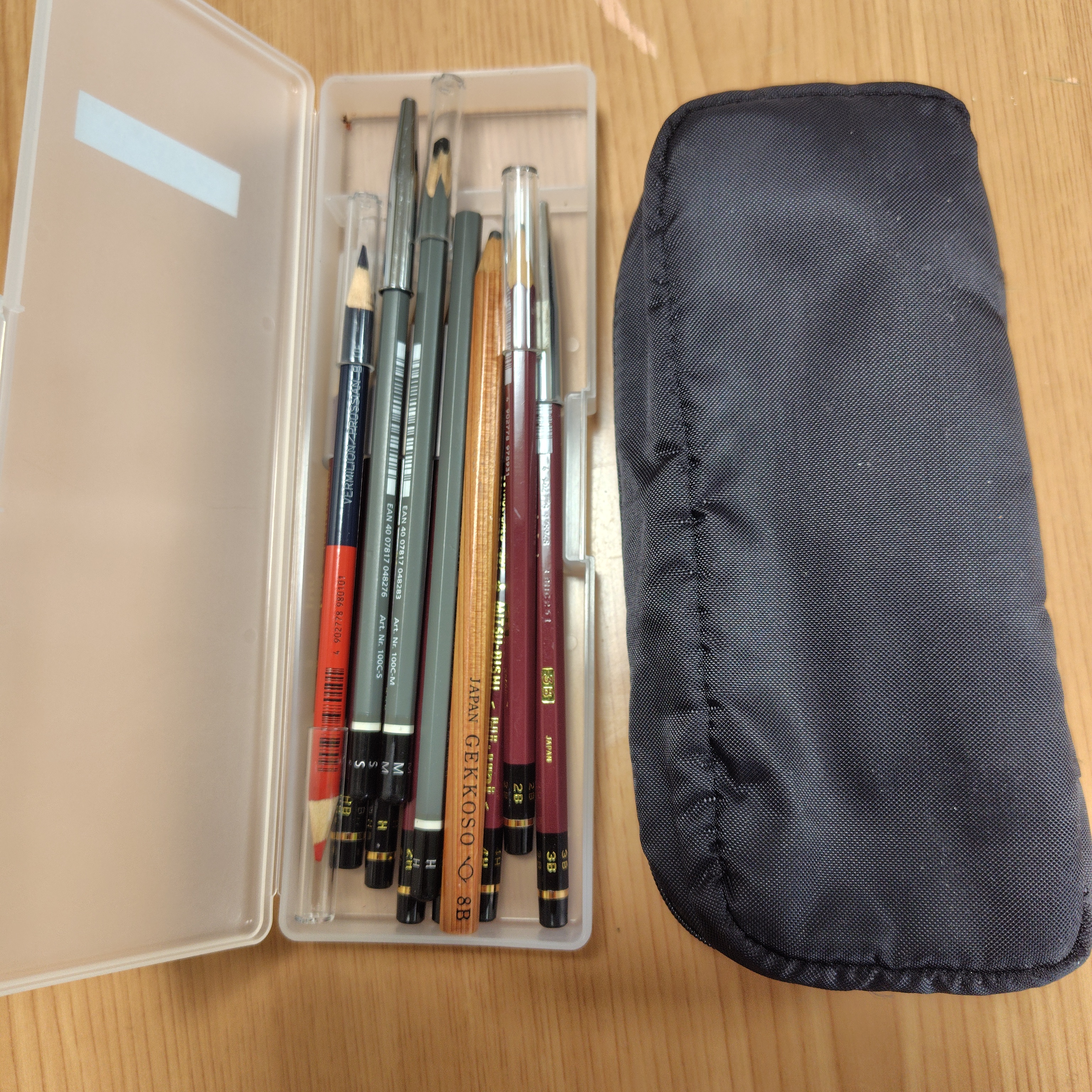 | 鉛筆の硬さ別のもので、絵を書き分け あと、とにかくたくさんはいるペンシルケース入れ、使い分けてます |