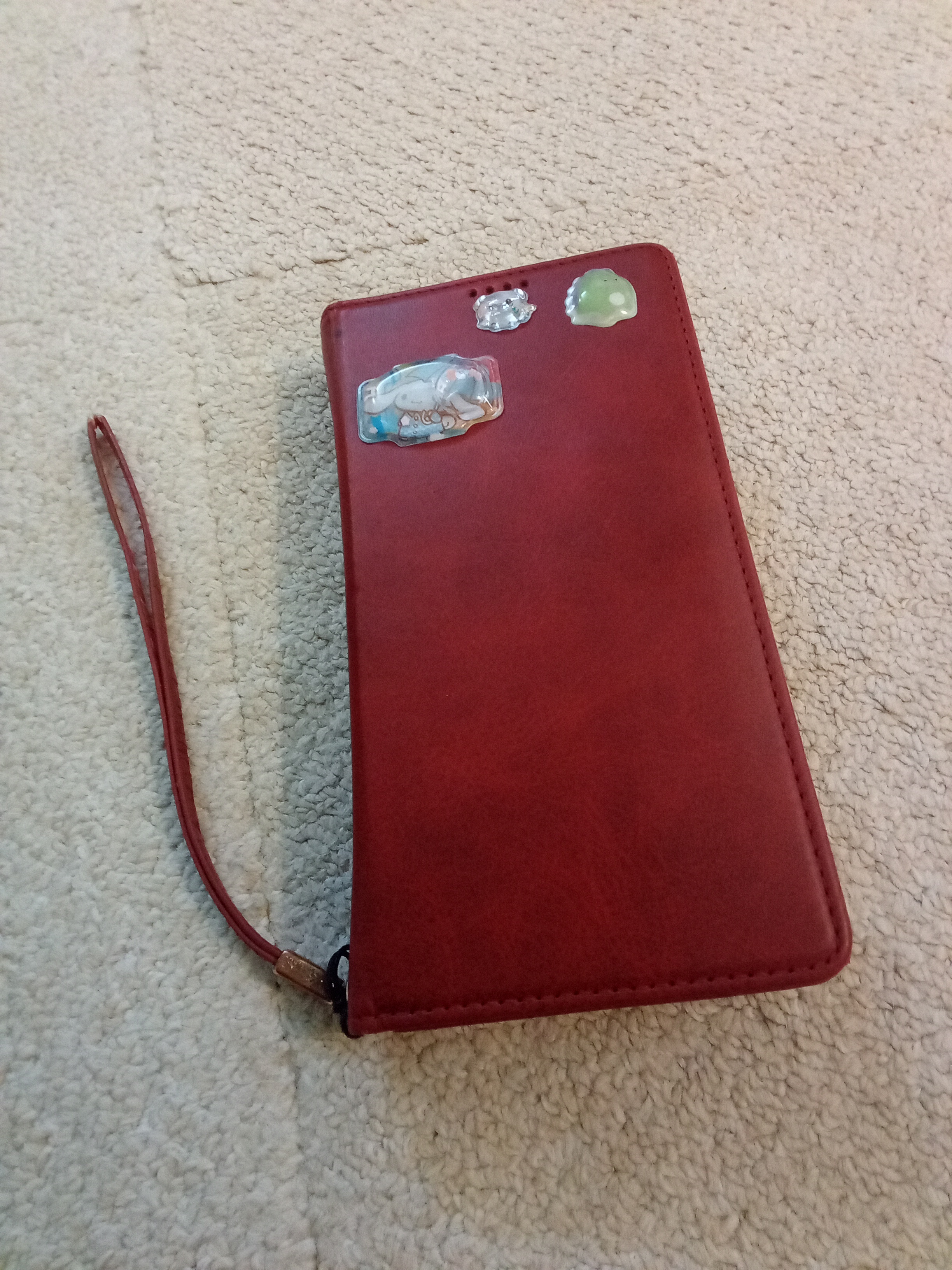 | 手帳型のカバーをつけています。娘に買ってもらって、もう3年になります!カードも何枚か入り便利です |