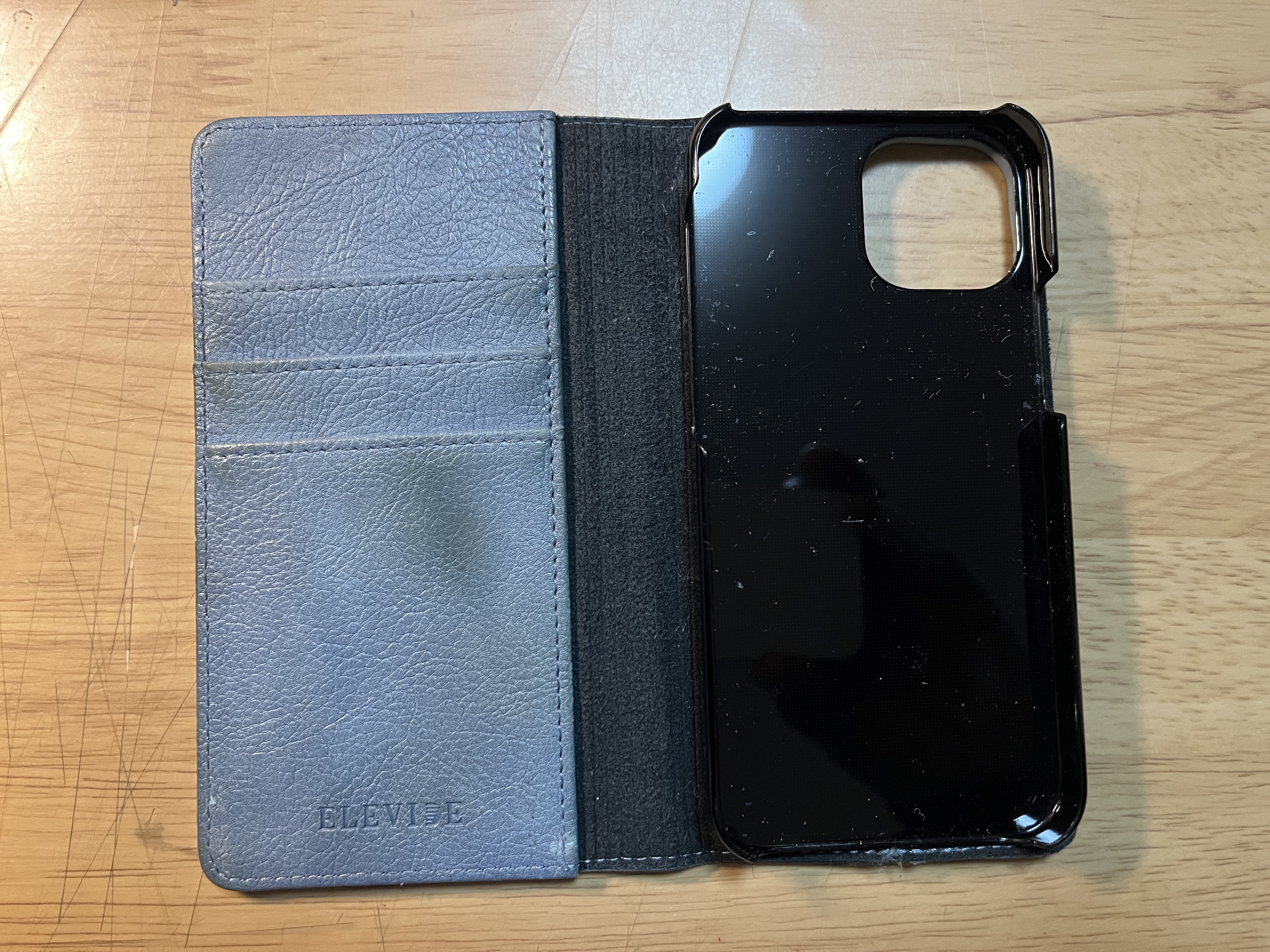| スマートフォンには、手帳型のカバーを使っています。 |