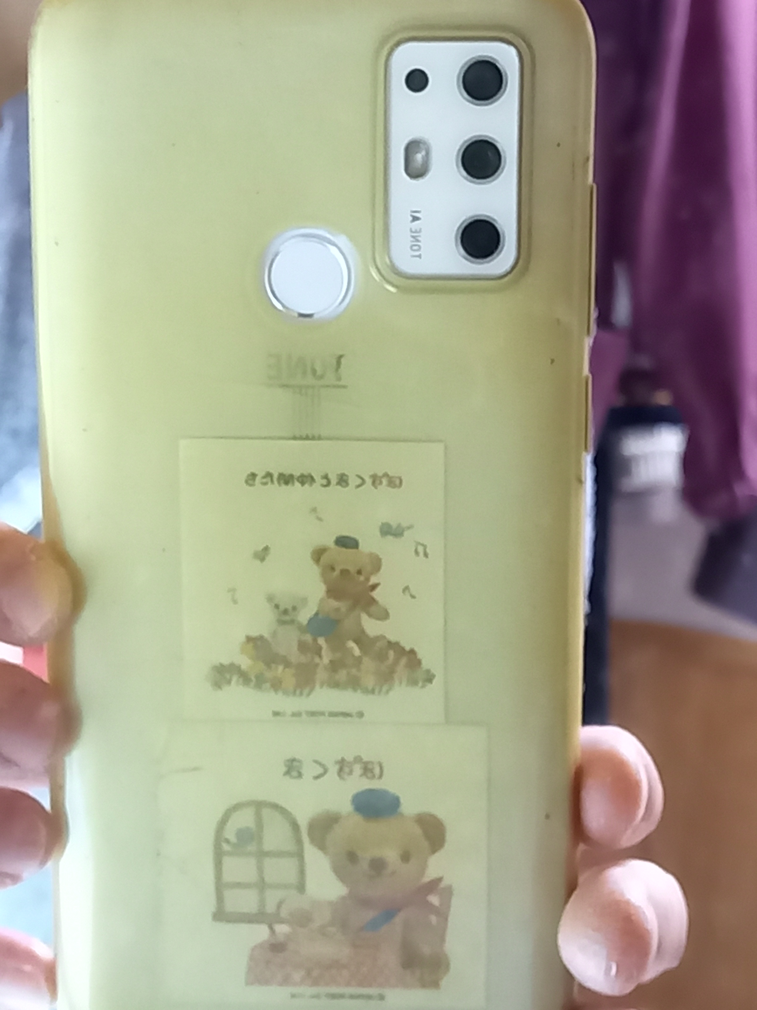 | 背面だけのカバー。お気に入りのキャラクターの絵を切り抜いて入れてます。 スマホ1台しか持ってないから、撮影苦労しました! |