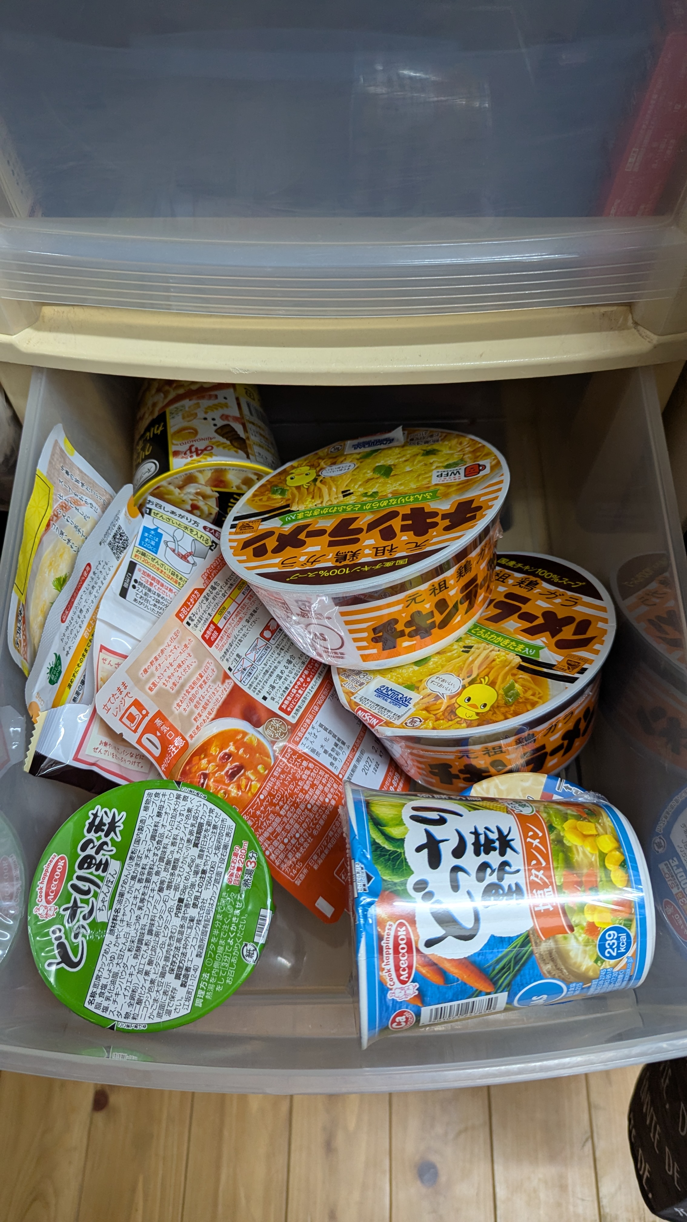 | 台所がごちゃごちゃしております。整理が必要です。レトルトやインスタントは、好きです。 |