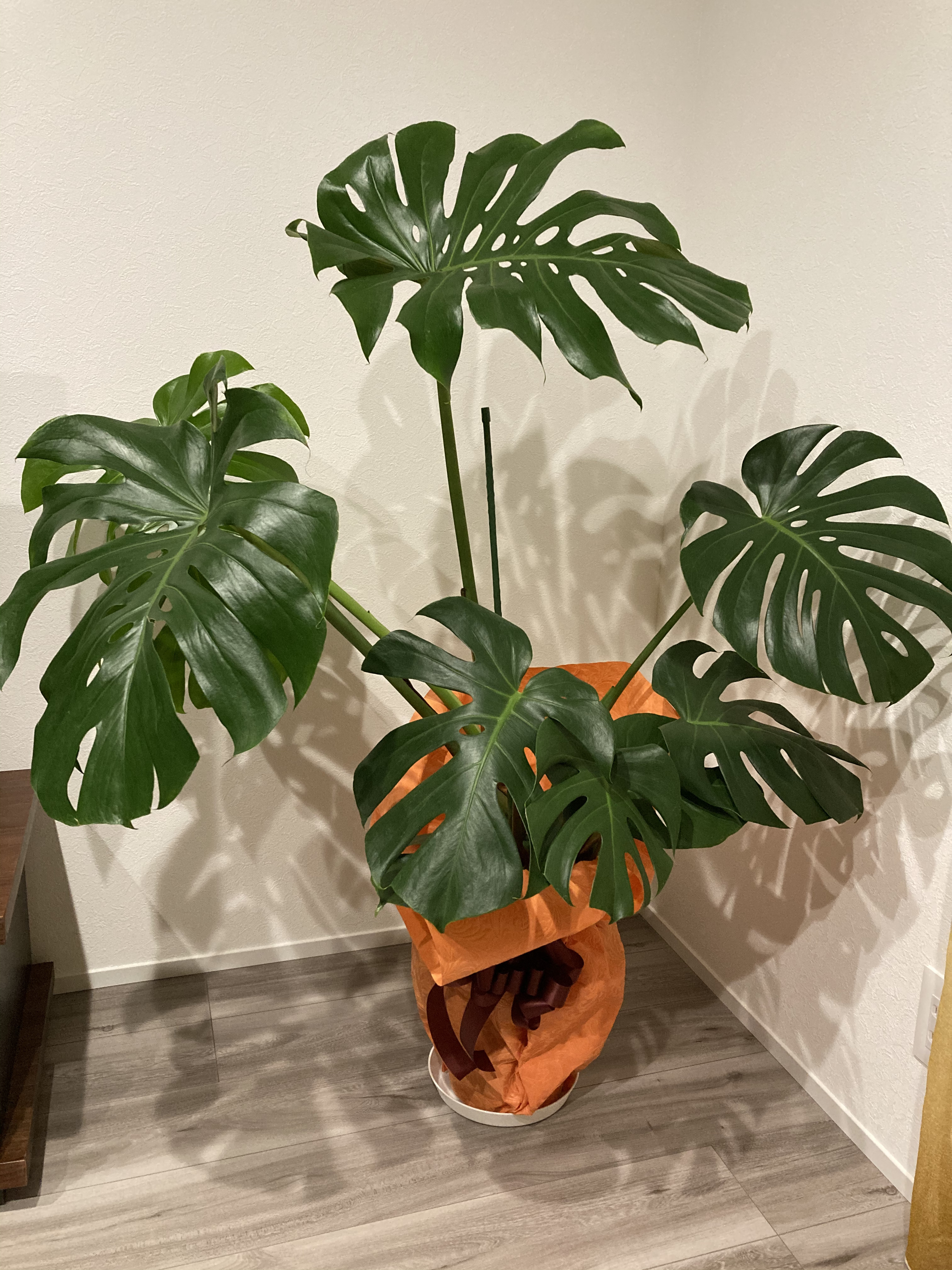 | 片隅の窓際に置いてます。モンステラは水やりがそんなに必要ないので楽ちんです |