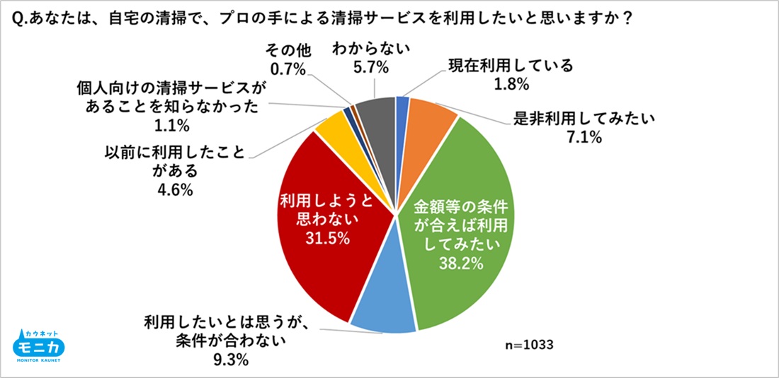 ながらも約半数は利用意向あり、プロの清掃へのニーズ高まる。