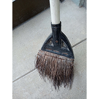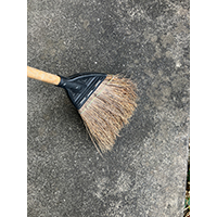 - 小石は何度も何度もほうきで掃いていました。きれいにならないので諦めていました。シダのほうきを使用していました。
