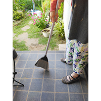 - これまでは、柄の短いシダのほうきを使用していました。ちり取りに掃き込む時は良いのですが、少し広いスペースのゴミを掃き集める時は腰をかがめなければならず、腰が痛くなりがちでした。