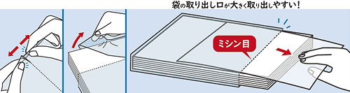 ●袋にハリがあり、ミシン線で切り取ることができ、中身が取り出しやすいです。